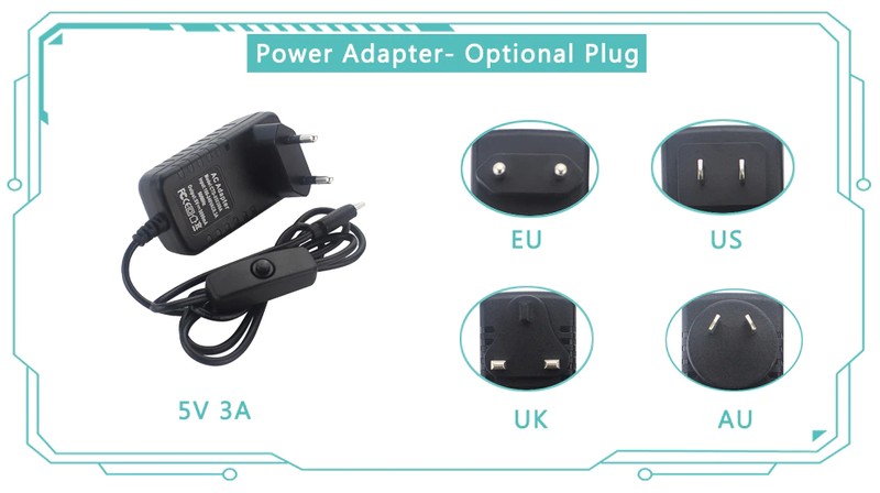 電源アダプタ:5V 3A出力、ON / OFFスイッチボタン、EU / US / UK / AUプラグ