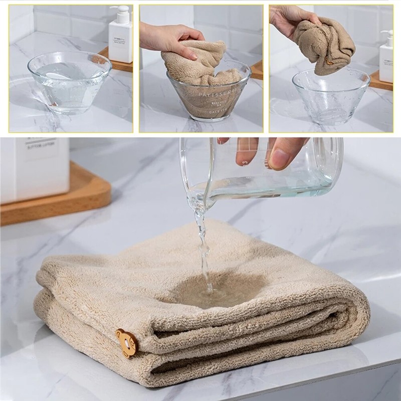 髪を洗った後、タオルで包み、ボタンで固定します。 ヘアタオルが滑り落ちないことを確信でき、良い髪の日で朝を始めることができます!