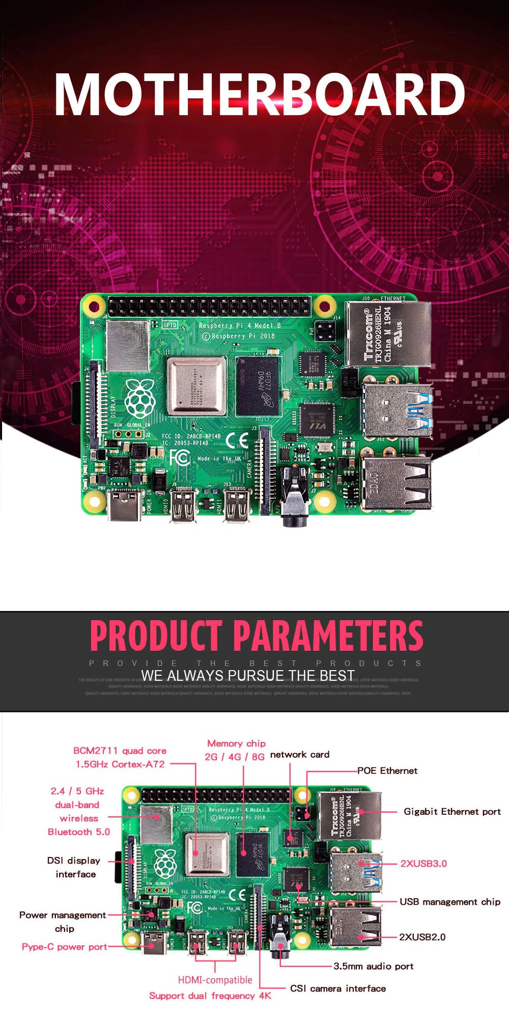 1.broadcom bcm2711、クアッドコアCortex-A72 (arm v8) 64ビットsoc @ 1.5ghz