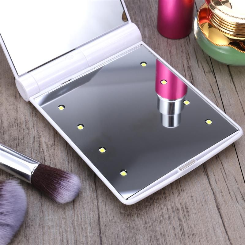 1 * ledライト付き化粧鏡ポータブルコンパクト8-led化粧品折りたたみライトミラー