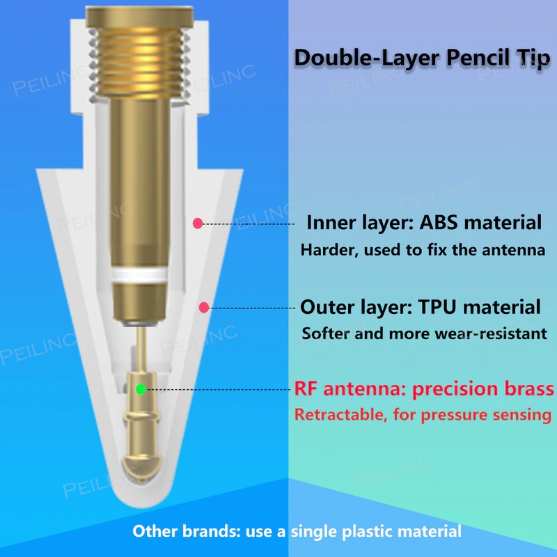 Appleの公式ペン先: 2層設計で、内側の層はabs素材で作られ、外側の層はtpe素材で作られています。
