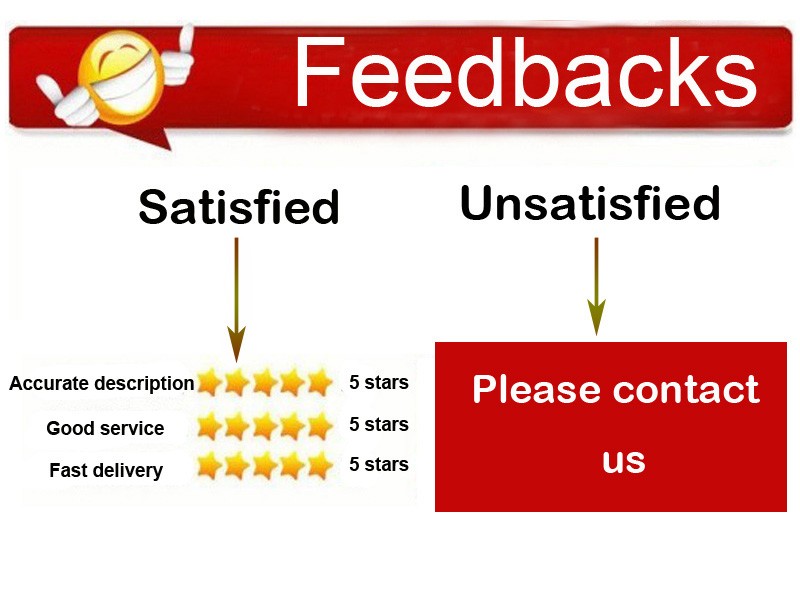 1.受け取った製品が損傷していたり、スタイルが間違っていた場合は、最初に否定的なフィードバックを残さないでください。私たちに連絡してください。私たちはそれを処理し、あなたに満足のいく答えを与えます。