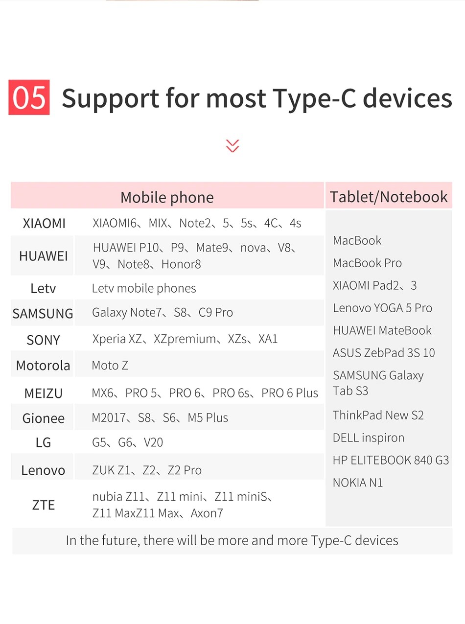 特徴1:急速充電のためのマイクロUSBメスアダプタへのUSB C