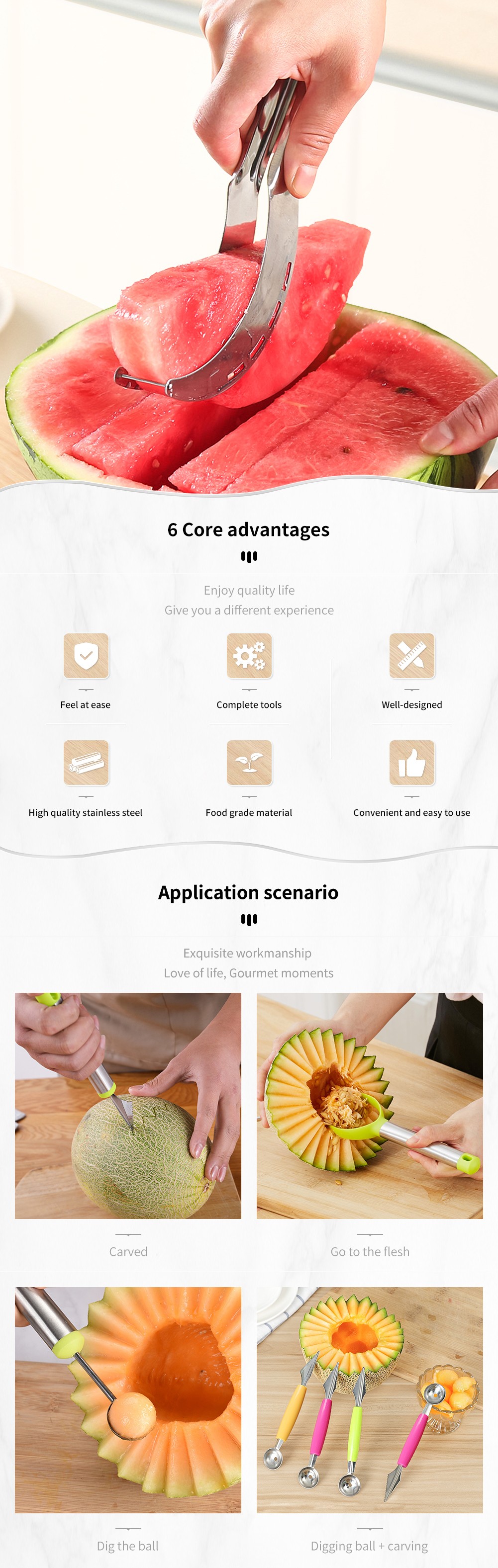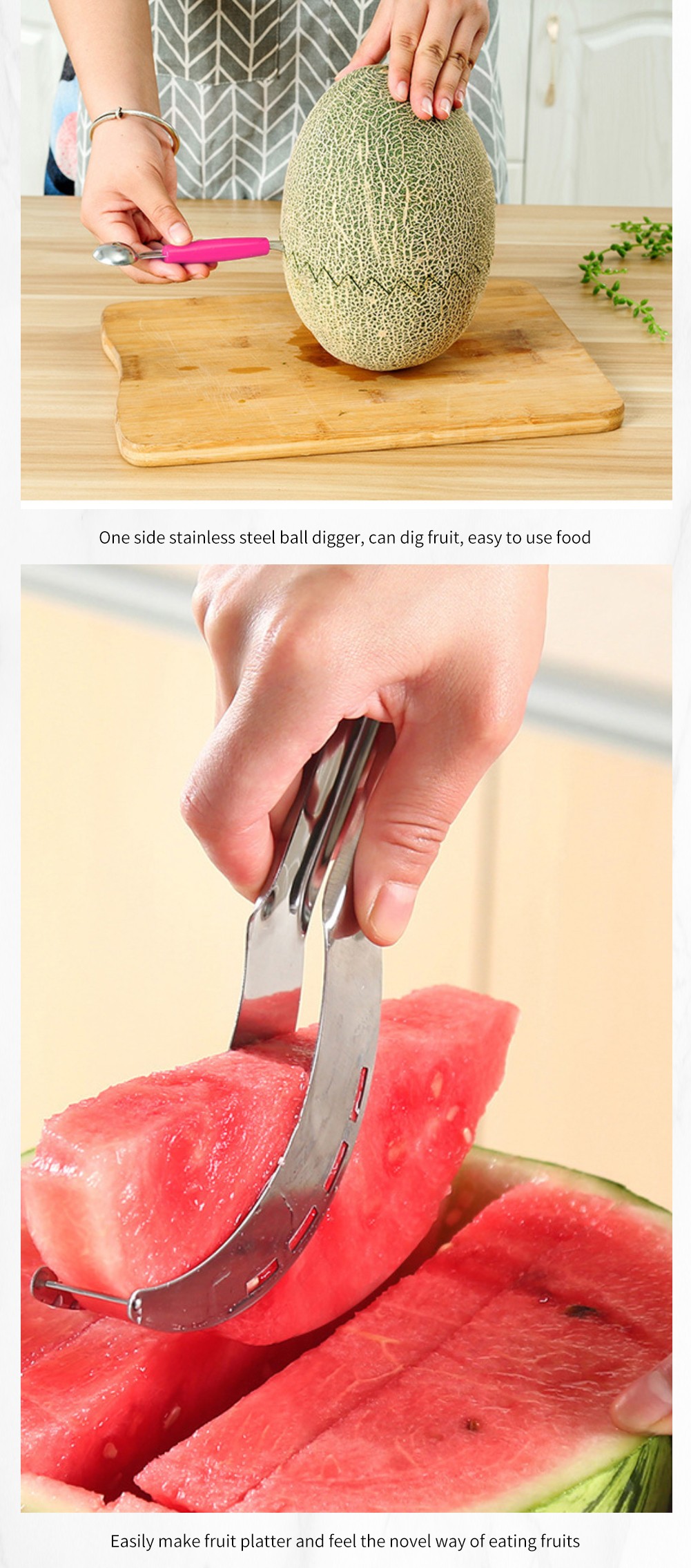 鋭いエッジがなく、安全に使用できます! パーティー、ピクニック、バーベキューでスイカを切るために鋭いナイフを使用したり残したりする必要はもうありません。