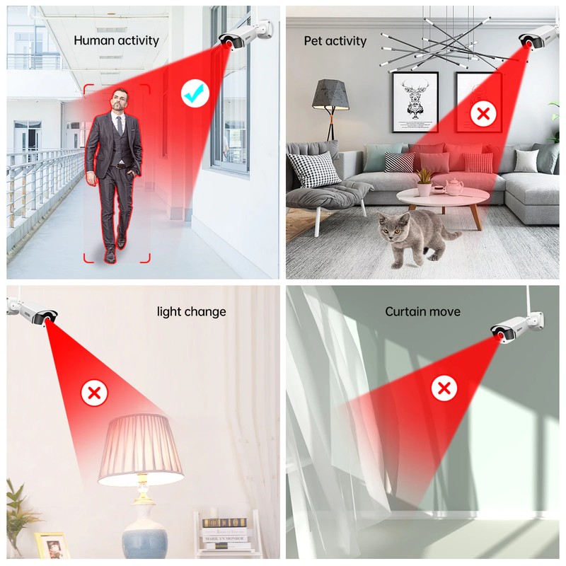 Abra la detección humanoide, solo cuando detecte actividad humana recibirá un mensaje de alarma. Reduce las falsas alarmas y mejora la precisión de la detección