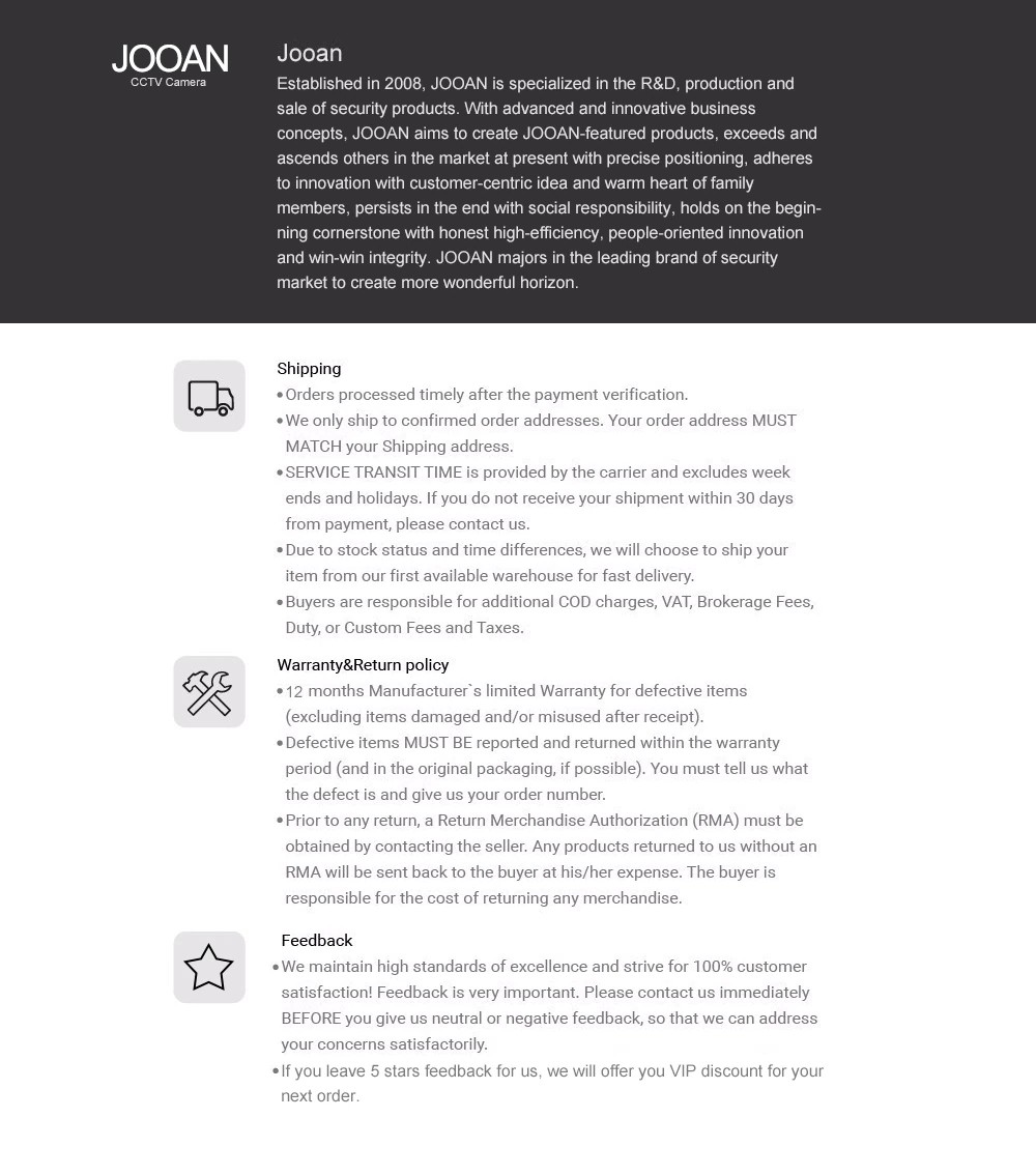 ¡Gracias al vendedor por entrega rápida! La calidad es buena. Inmediatamente conectado, todo funciona. No necesitas personalizar nada. Diez segundos esperaron y voila toda la imagen en la pantalla del monitor. También puede ver de forma remota en el teléfono inteligente, descargue la aplicación y el contenido con la imagen. Vendedor recomendado !!!
