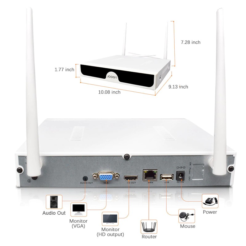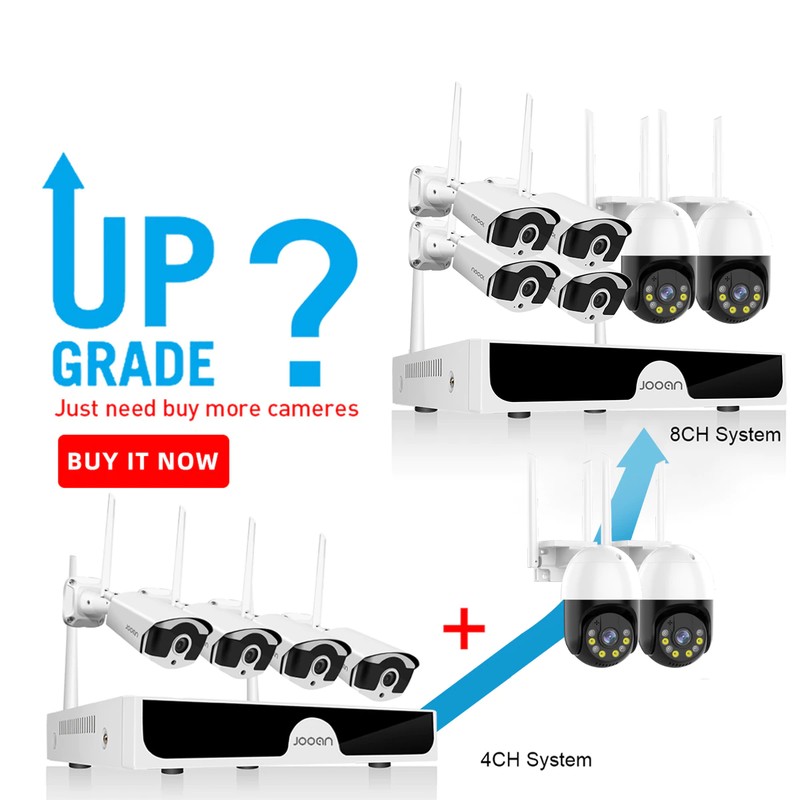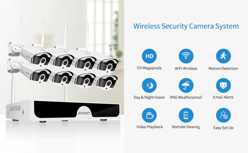 • Jooan-Sistema De Cámaras De Seguridad Cctv, Kit Videovigilancia Inalámbrico, Grabador De Audio 8Ch Nvr Hd 3Mp P2P Wifi, Ip