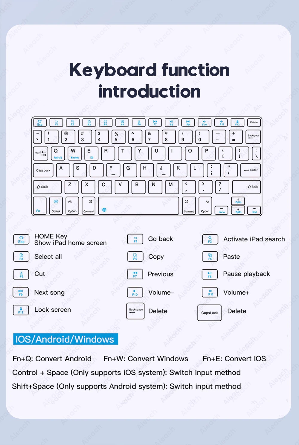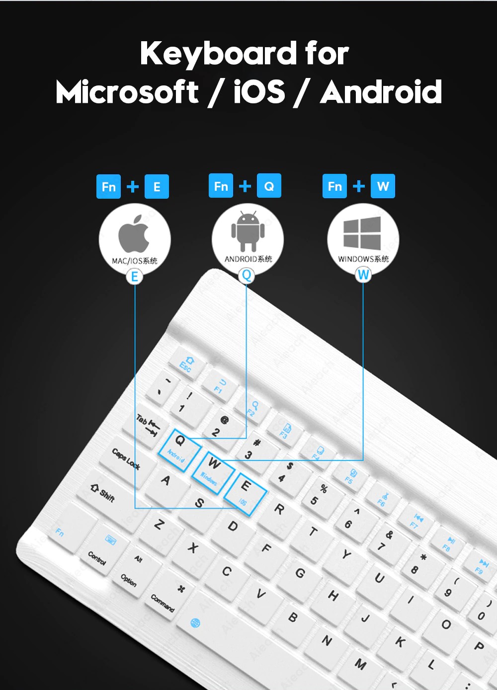 Android sistemi için Fn + Q Windows sistemi için Fn + W IOS sistemi için Fn + E (Lütfen klavyeyi bağlamadan önce gerekli sistemi değiştirin)