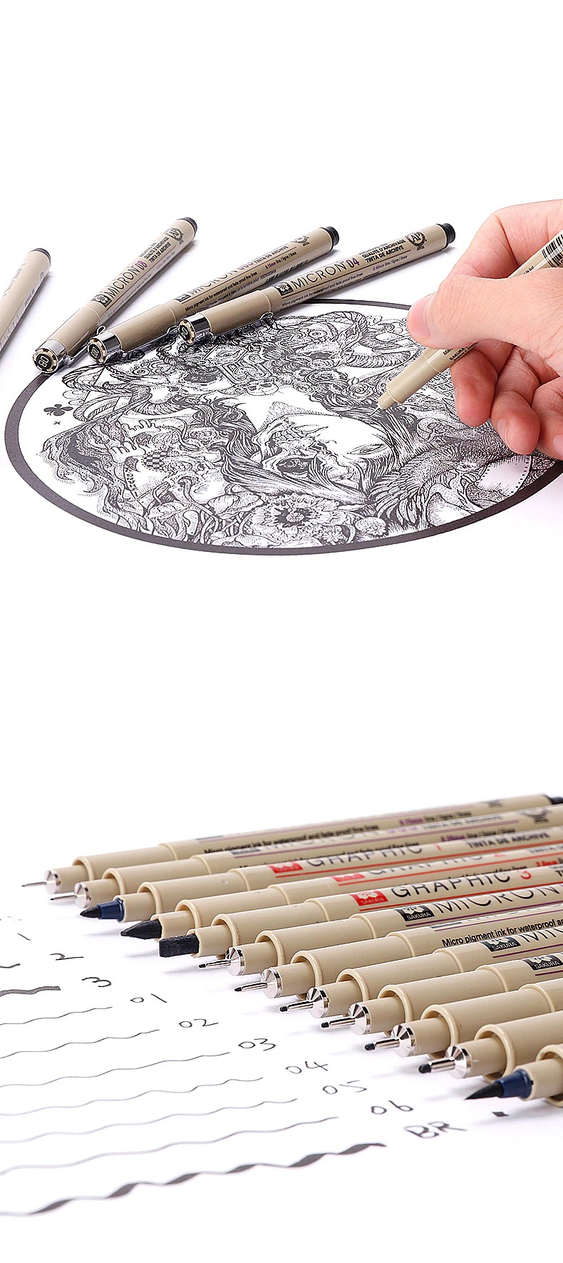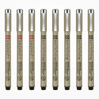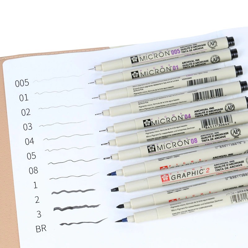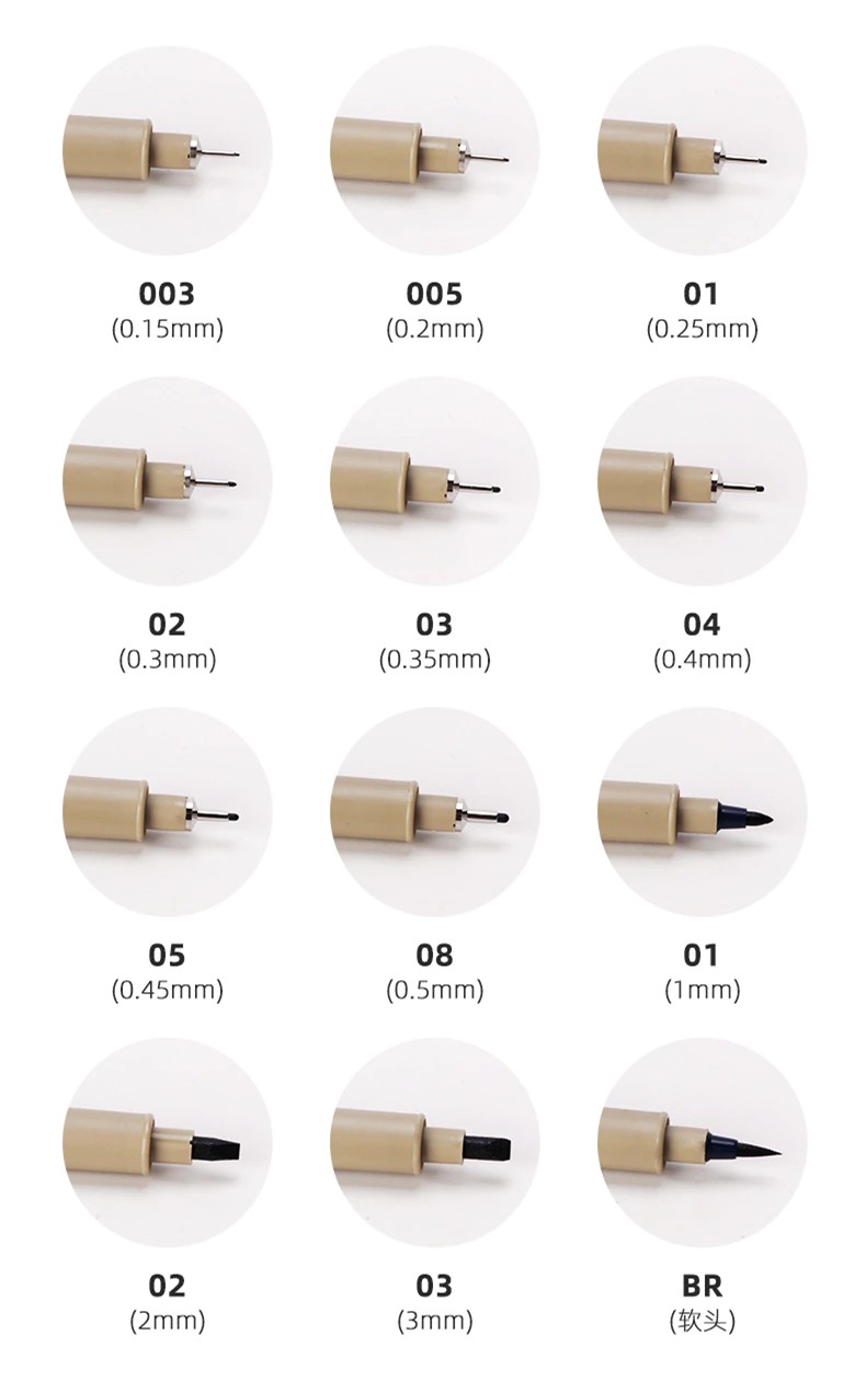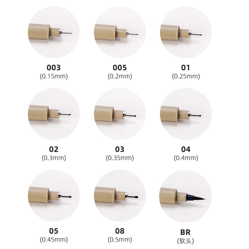 펜촉 크기 정밀 라인 폭 0.15mm, 0.2mm, 0.25mm, 0.3mm, 0.35mm, 0.4mm, 0.45mm 및 0.5mm, 브러쉬 각각