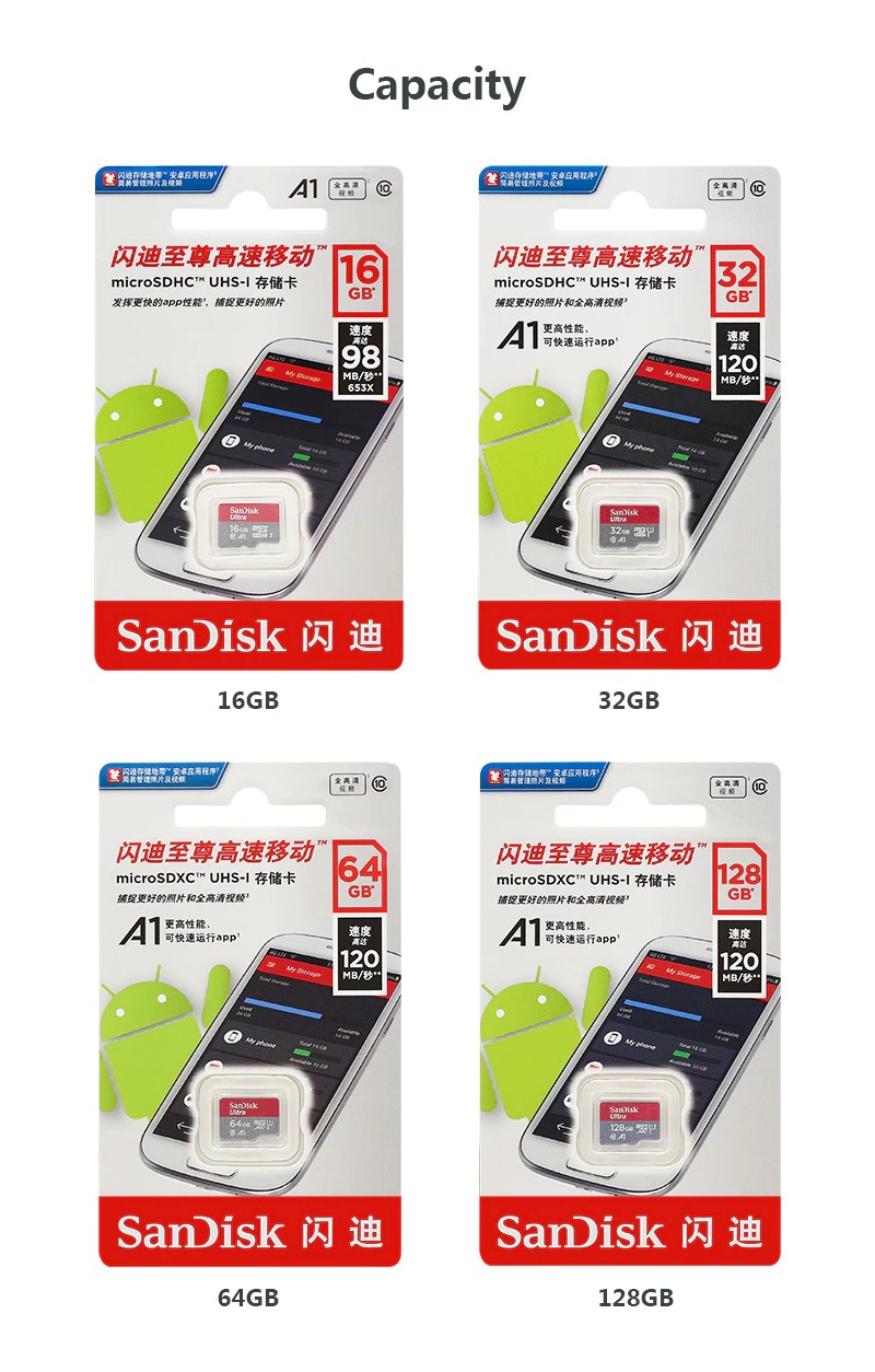 100% SanDisk Micro SD 카드 클래스 10 TF 카드 16gb 32gb 64gb 128gb 스마트 폰 테이블 PC 용 최대 98 메가바이트/초 메모리 카드