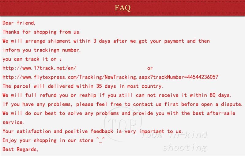 특별한 좋은 뉴스: 고객의 쇼핑 경험을 다시 제공하고 향상시키기 위해, 지금부터, 구매이상 $13이 제품이상 $13동일한 가격 제품의, 당신은 즐길 수 있습니다표준 물류로 무료 업그레이드당신이 기다리는 시간의 양을 줄이고, 가능한 한 빨리 사랑스럽게 당신의 측에 도착하게하십시오! (비고: 그것은 여전히 중국 게시물 일반 작은 패킷 플러스를 회의 주문 후 표시 될 것입니다, 하지만 우리는 당신을 위해 준비 됩니다 표준 물류.)