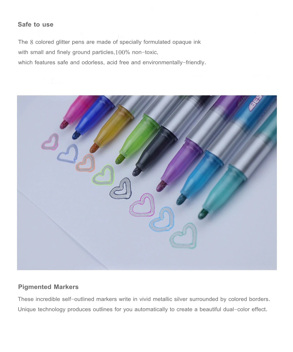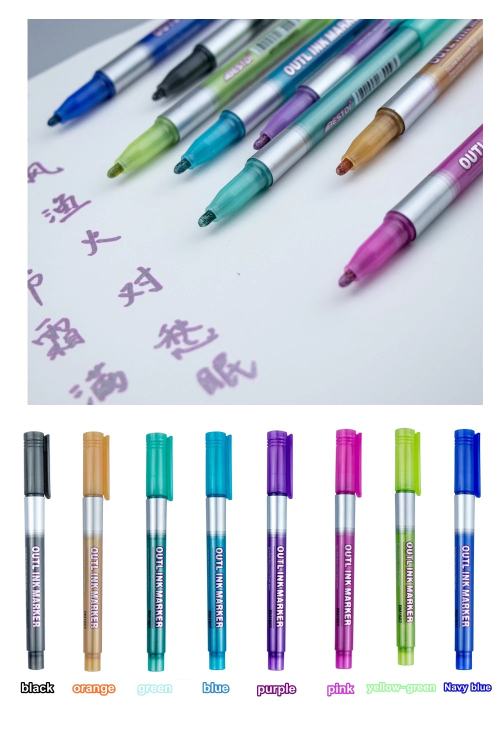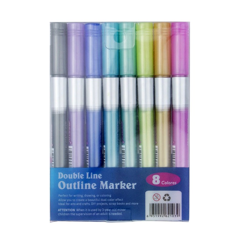 1 세트 x 8pcs 더블 라인 아트 마커 펜