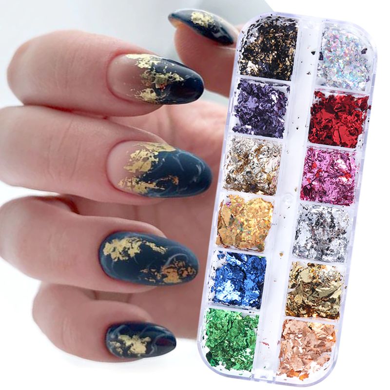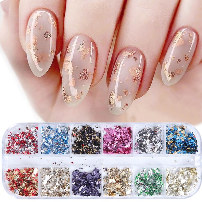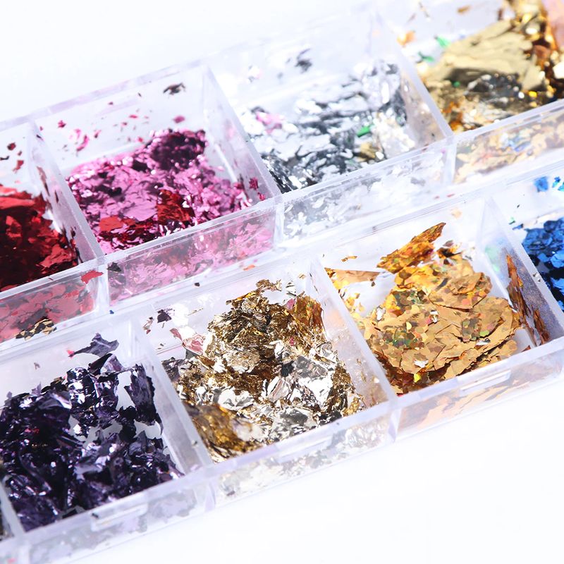 패키지 내용물: 12 그리드 포일 네일 스팽글 플레이크