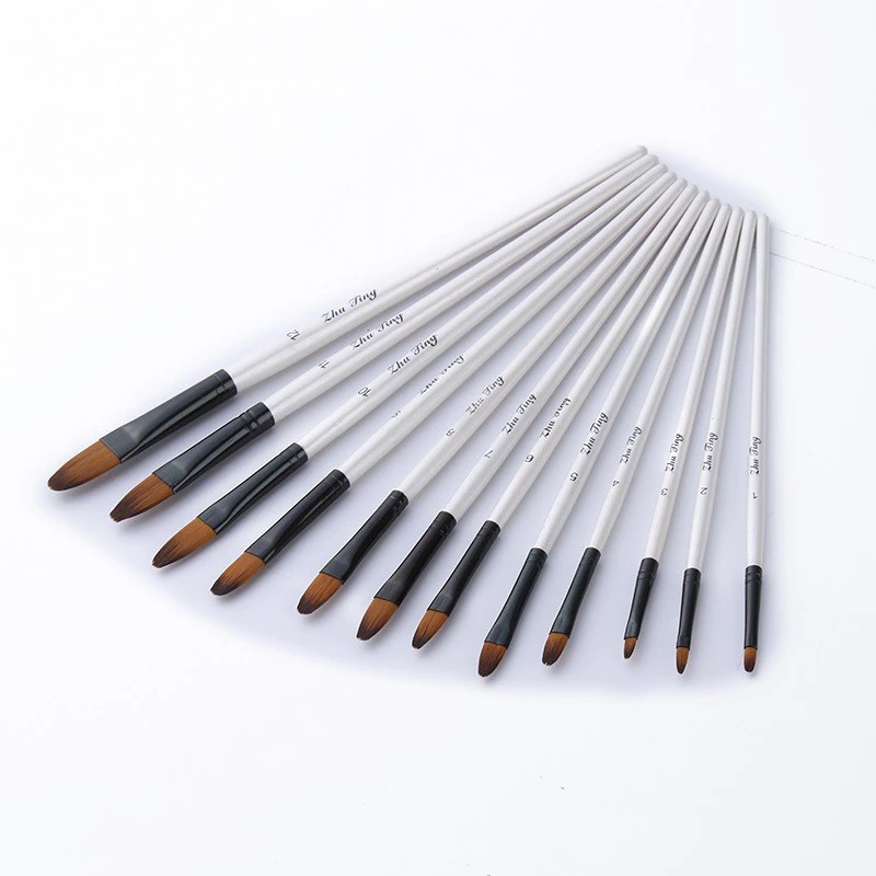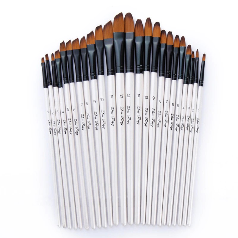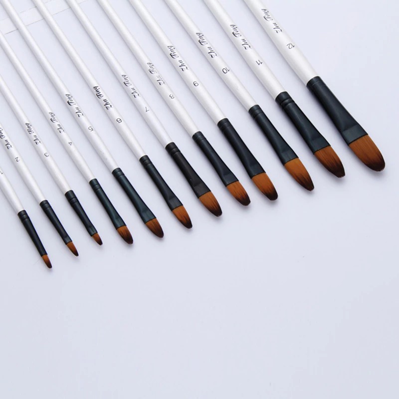 12pcs 나일론 머리 나무 손잡이 수채화 물감 페인트 브러시 펜 Diy 오일 아크릴 페인팅 아트 페인트 브러쉬 용품 학습에 대 한 설정