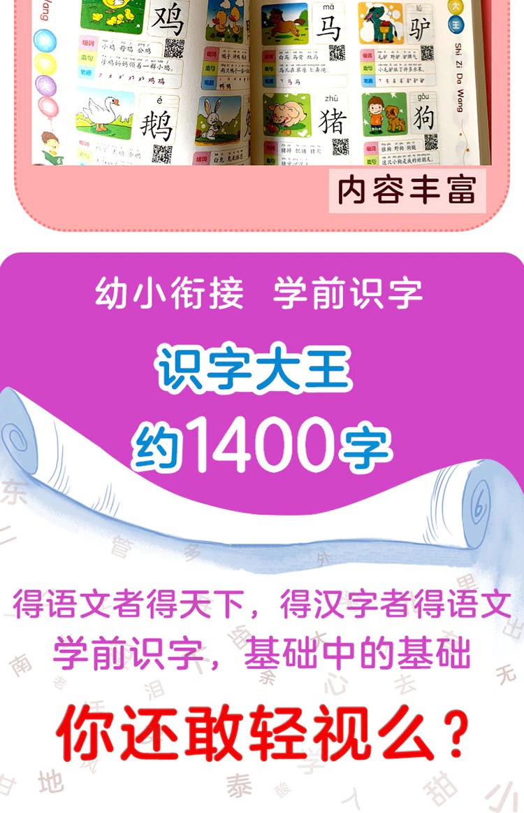 1400 단어 중국어 책 중국어 1 학년 교육 자료 한자 서예 그림 문해력 책