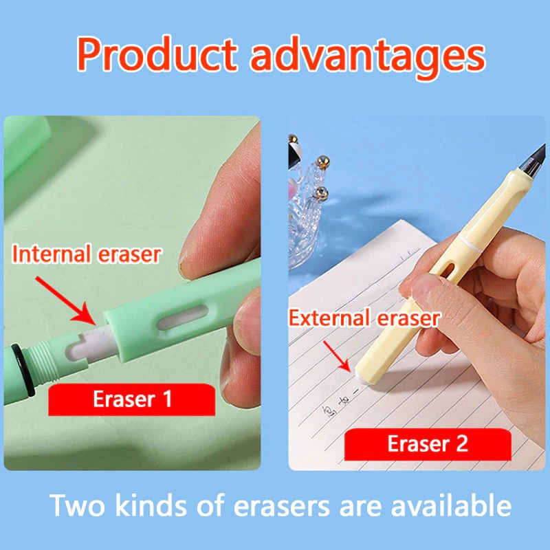 6. 특징: 최신 하이테크 이노베이션 영원한 필기구 펜, 잉크 없음, 더러운 손 없음, 리필이 깨지지 않고, 패셔너블하고 환경 친화적, HB 펜촉, 튼튼하고 내구성, 0.5mm 펜촉, 원활하게 쓰기, 500,000 단어를 쓸 수 있으며, 지속적으로 리필을 변경할 수 있으며, 편리하고 실용적인