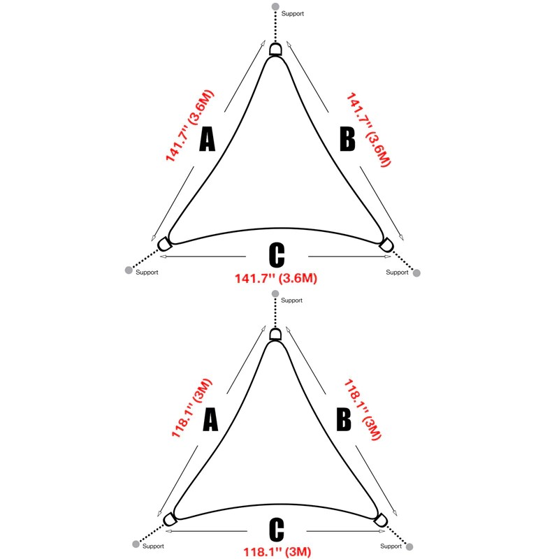 삼각형 모양 : 5x5x5m / 3.6x3.6x3.6m / 3x3x3m / 2x2x2m