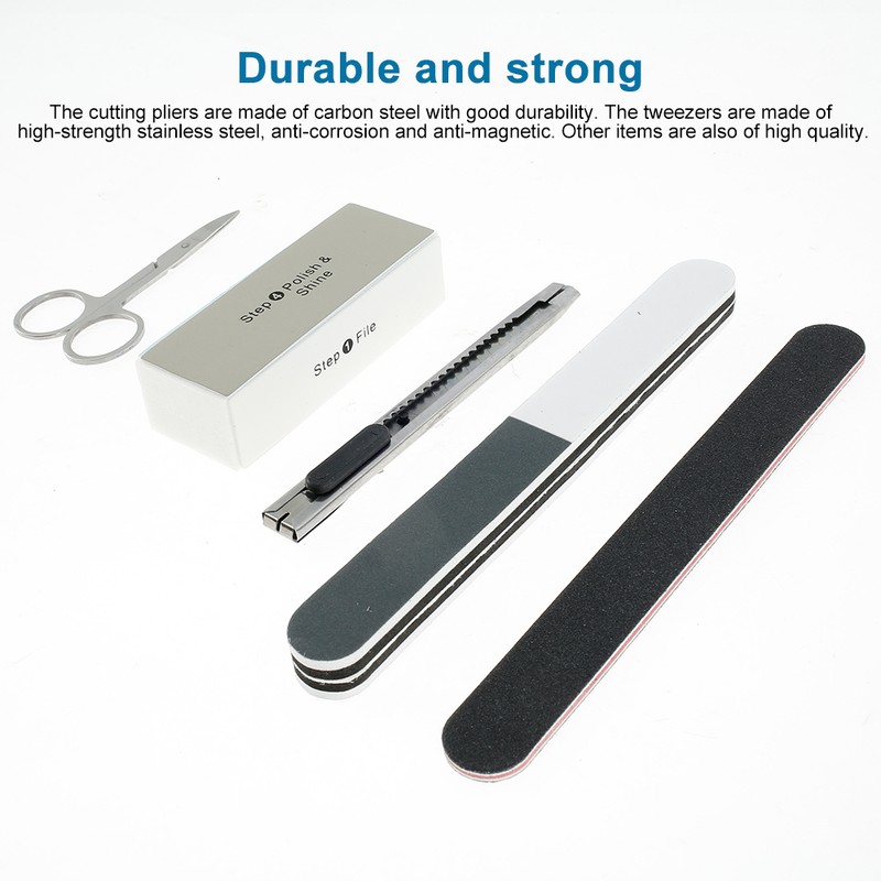 2. 내구성:트리머 펜은 고경도, 플라스틱 손잡이 및 미끄럼 방지 디자인으로 단단히 고정됩니다. 종이 커터를 보호하기 위해 안전 커버로. 절단 펜치는 좋은 내구성을 가진 탄소 강철로 만듭니다. 족집게는 정전기 방지, 산, 부식 및 antimagnetic 효력이 있는 고강도 스테인리스로 만듭니다. 다른 품목은 또한 고품질입니다.
