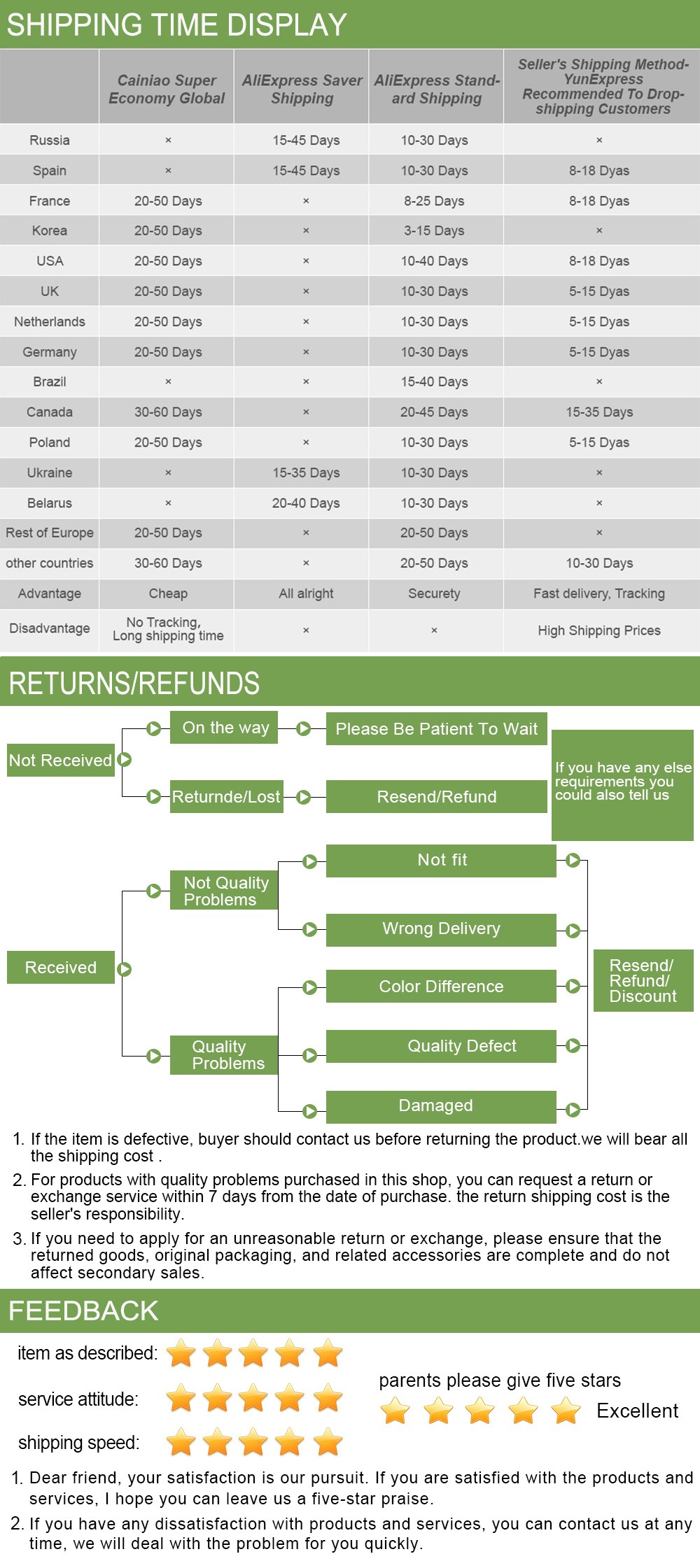 3) 주문 값이 150 달러 이상인 경우 항목은 DHL,EMS,Fedex,TNT 특급 배송을 통해 무료 배송됩니다.