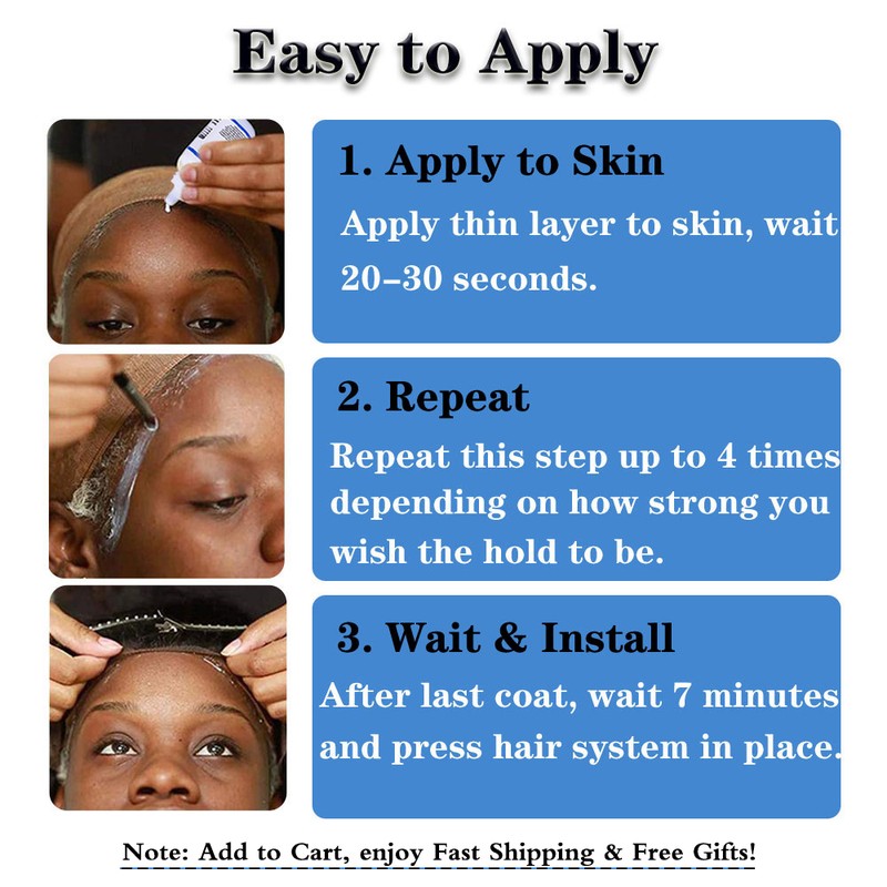 2. 우리의 접착제는 폴리와 레이스 머리 보충 체계 둘 다에 사용을 위해 안전하 신청 후에 보이지 않는 유대를 창조합니다. 이 보이지 않는 본딩은 당신의 헤어 라인을 숨기고 남성과 여성 모두를위한 당신의 가발 또는 toupee에 대한 자연스러운 모습을 만드는 데 도움이됩니다.