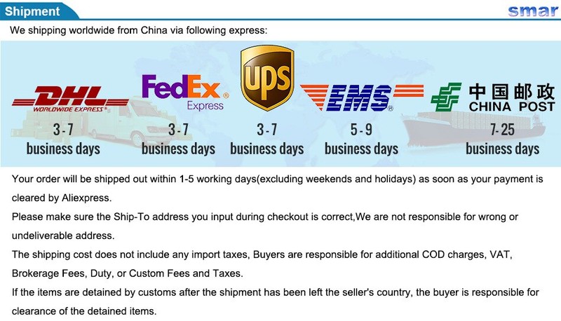 (참고: 귀하의 주소가 원격 영역으로 defind 경우: 존 5 카나리아 섬 포스트 코드 시작 35/38 및 존 4 Ceuta & Melilla 포스트 코드 시작 07/51/52, 우리는 스페인 창고에서 당신의 순서를 보낼 수 없습니다, 그러나 우리는 중국에서 당신의 순서를 무료로 보내서 좋습니다)