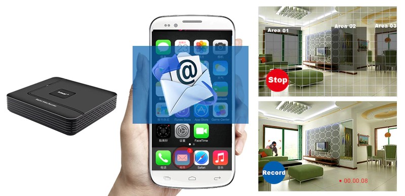 움직임이 모니터링 영역에서 감지 될 때 모션 감지 알림을 활성화 할 수 있습니다, 인스턴트 이메일은 자동으로 사서함 및 전화로 전송됩니다. 집에서도 모든 정보를 얻으십시오.