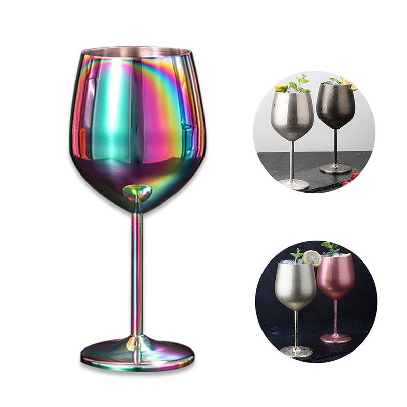 500ml 304 스테인레스 스틸 단일 레이어 잔 레드 와인 유리 다채로운 대용량 드럼 모양의 방울 와인 글라스