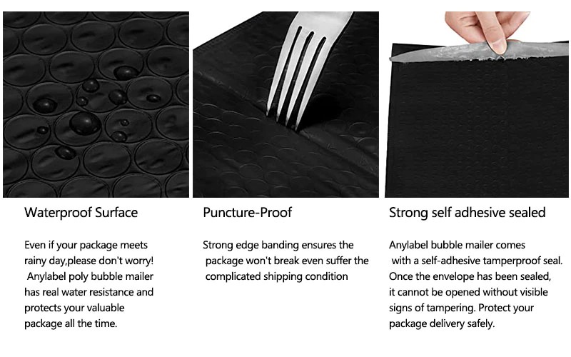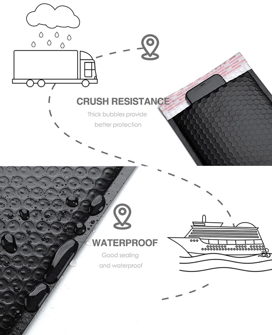 다목적 버블 우편물: 화장품, 그림, 패션 액세서리, 보석류, 의약품, 씨앗, 전구 등 우편물을 보낼 수 있습니다. 그들은 배송 중 깨지기 쉬운 물건을 보호하기에 충분히 패딩되어 있습니다. 라미네이트 상단을 사용하면 자체 접착 스탬프와 주소 라벨을 쉽게 부착 할 수 있습니다.