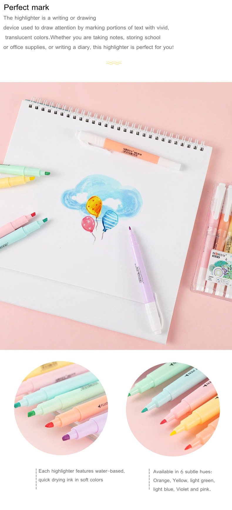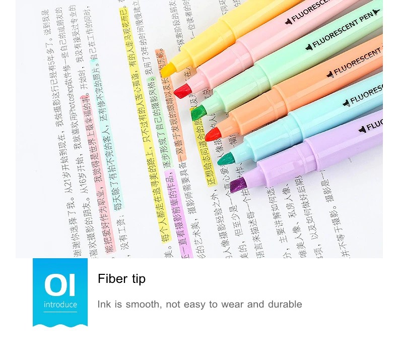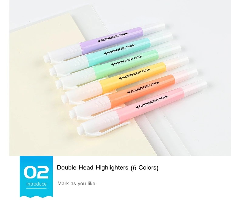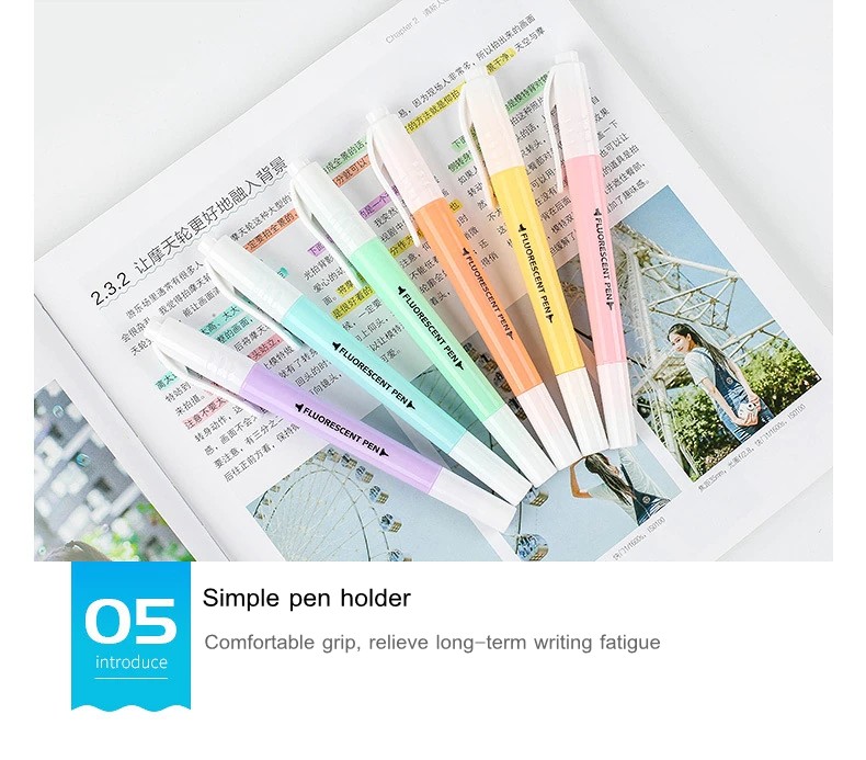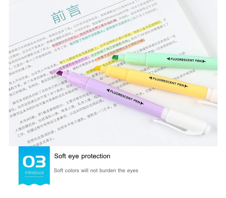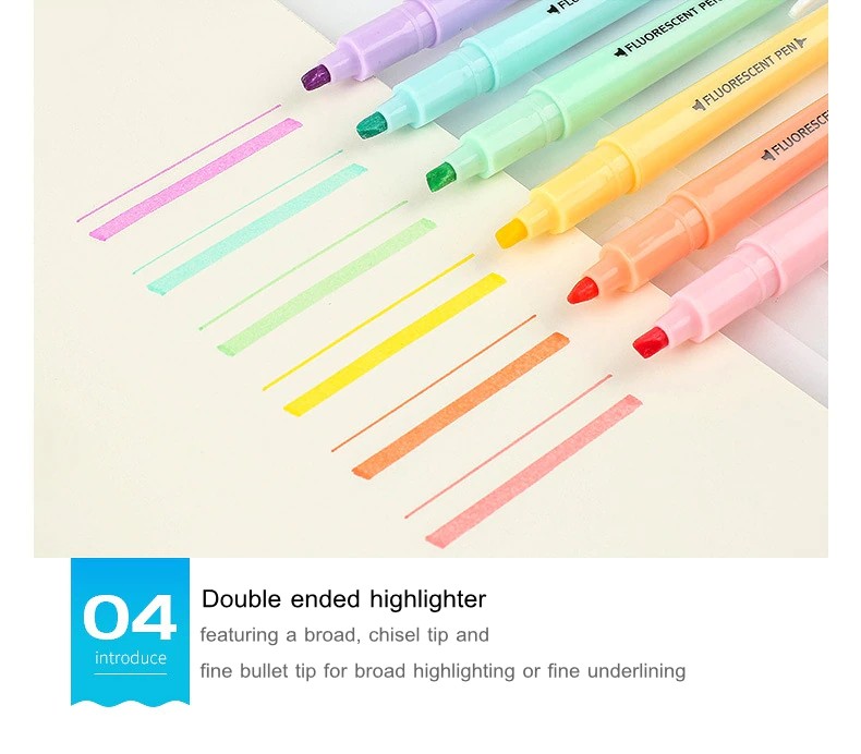 -형광펜은 넓고 정밀한 팁으로 양면 처리됩니다.