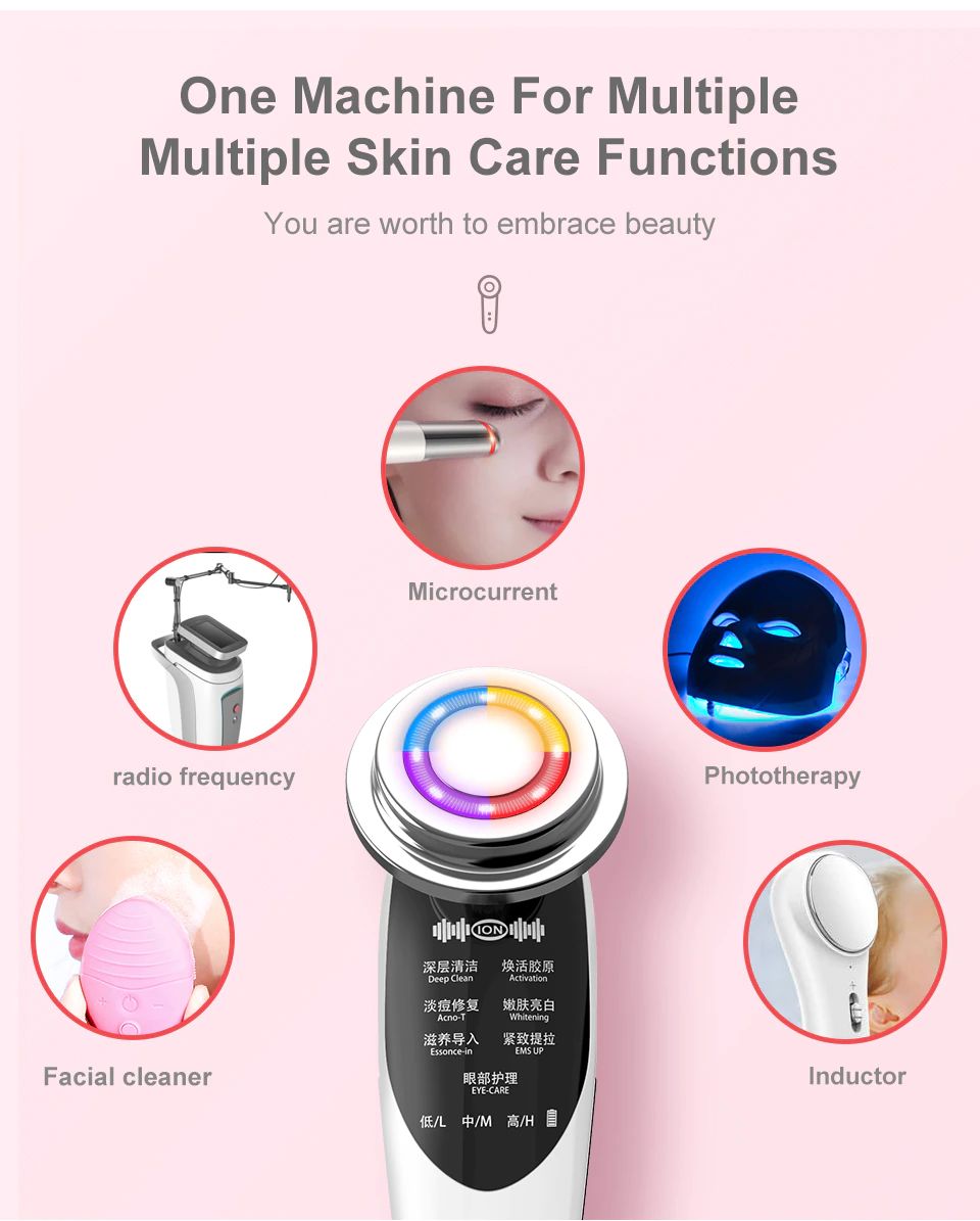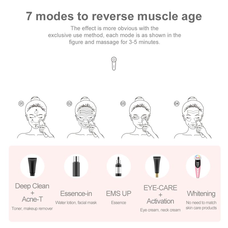 [7 모드] 확고한 피부, 피부 톤을 밝게하고, 주름을 방지하고, 주름을 제거하고, 얼굴을 제거하고, 정화하고 해독시킵니다.