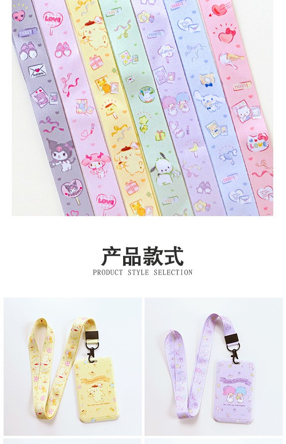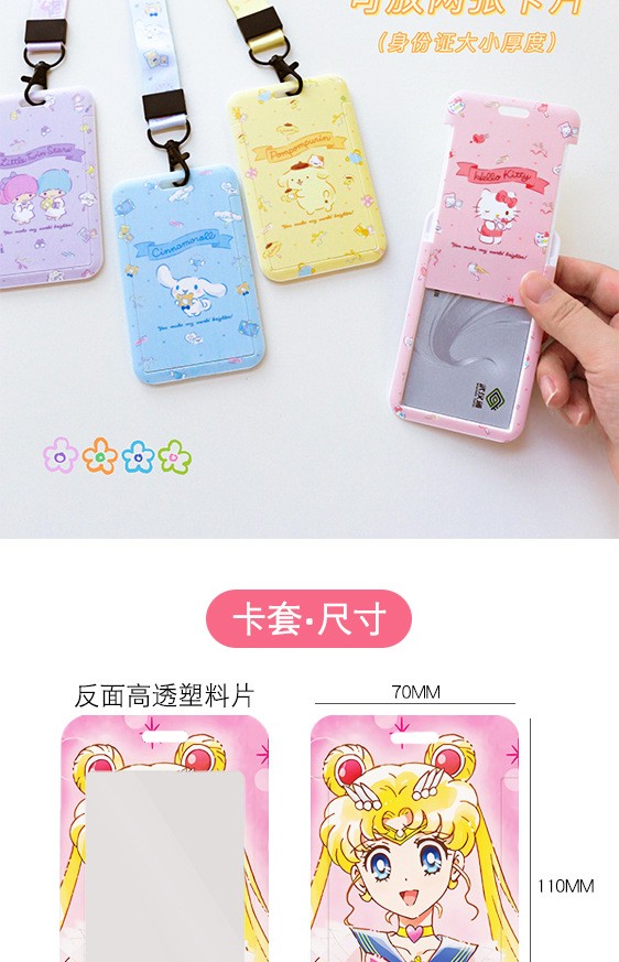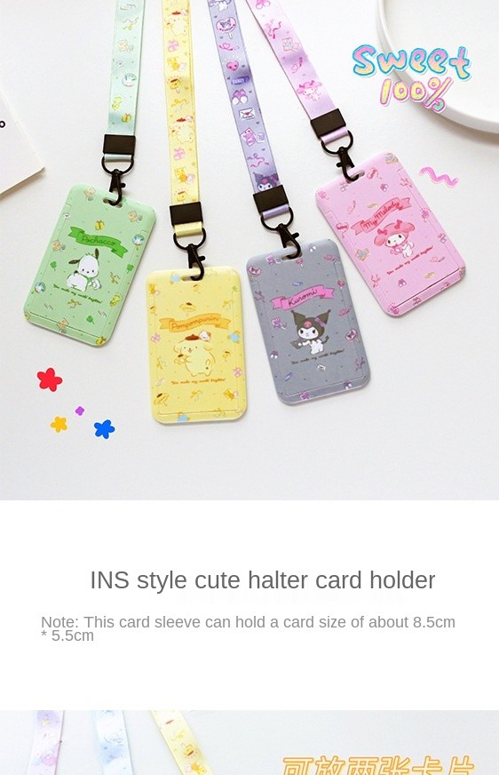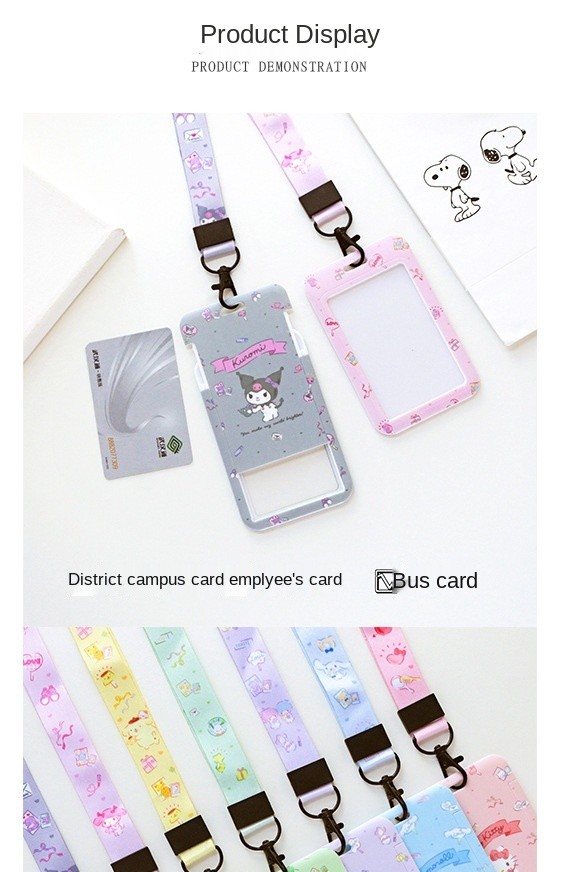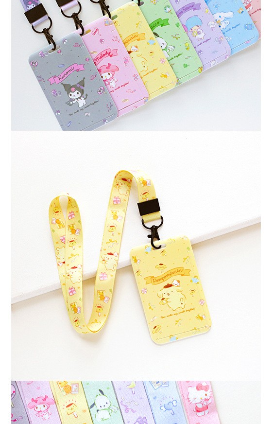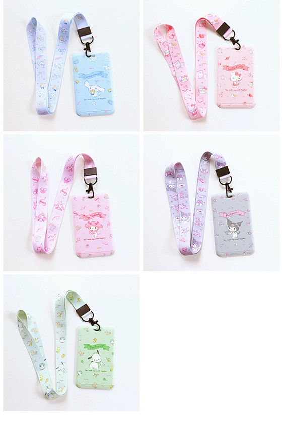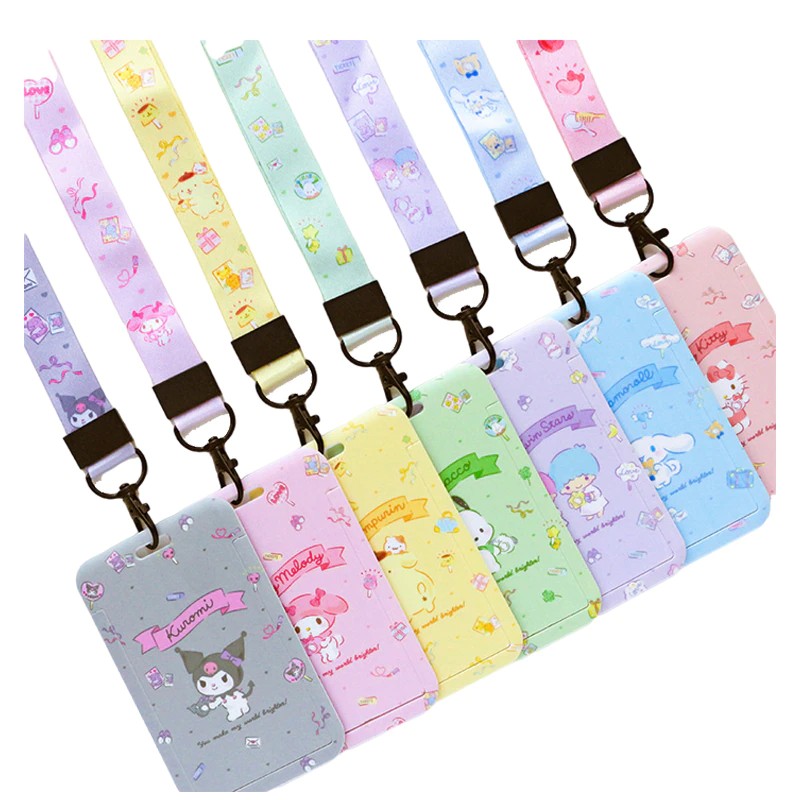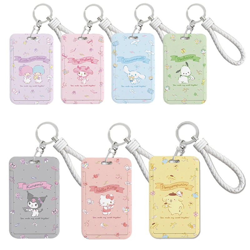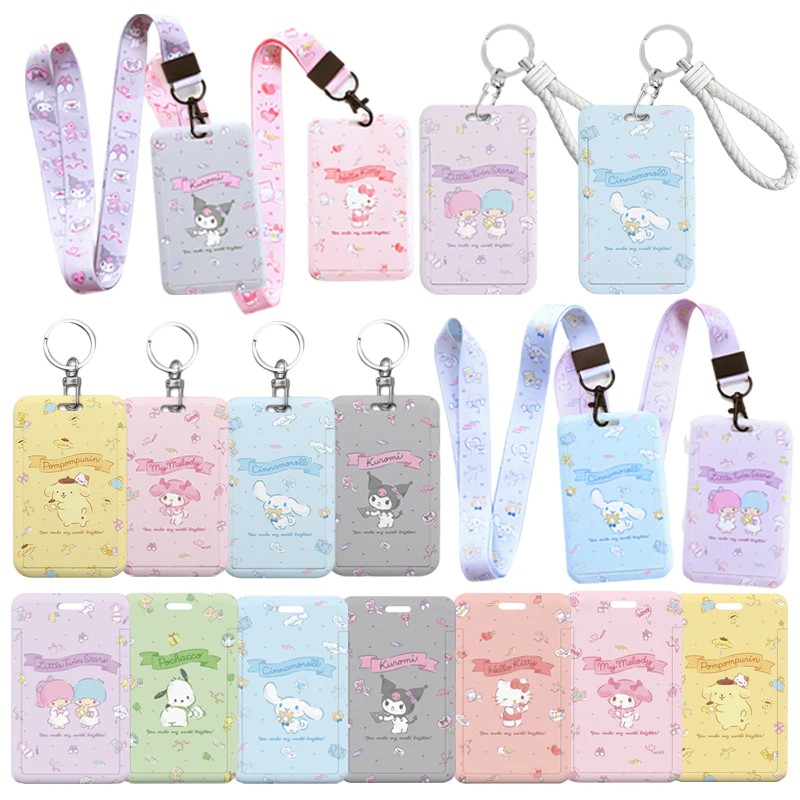 Anime Kawaii 귀여운 Cinnamoroll Kuromi 내 멜로디 Purin 개 Kt 고양이 플라스틱 끈 카드 소지자 키 체인 식사 카드 보관 케이스