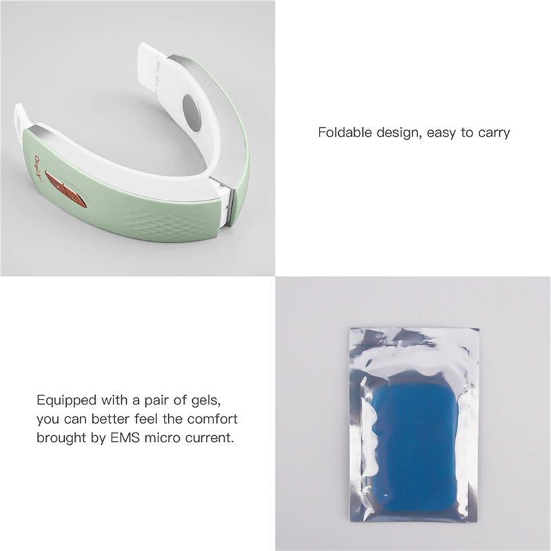 CkeyiN 진 V 자형 리프트 벨트 기계 진동 가열 레드 블루 LED 광자 치료 얼굴 리프팅 장치 얼굴 슬리밍 갈바니 마사지 V-얼굴 관리