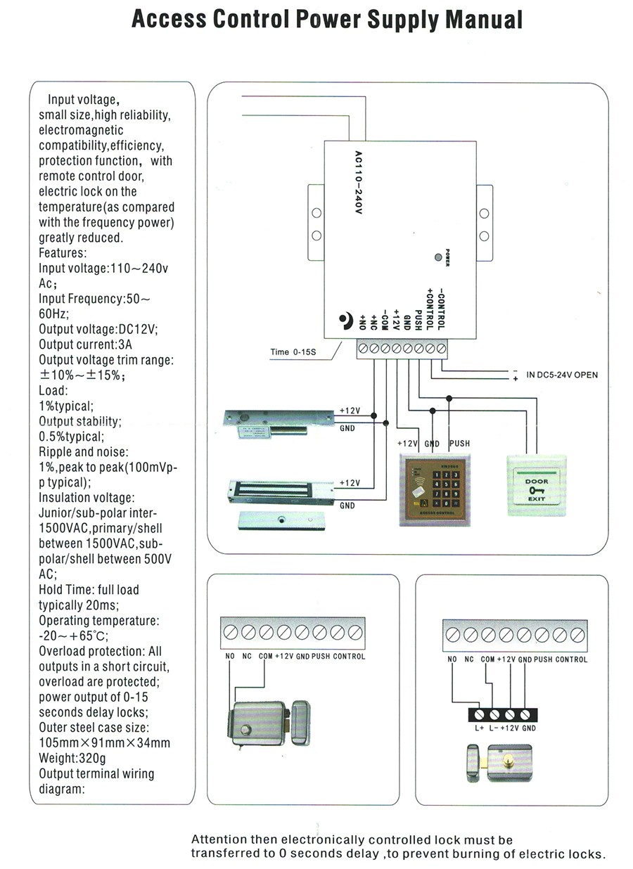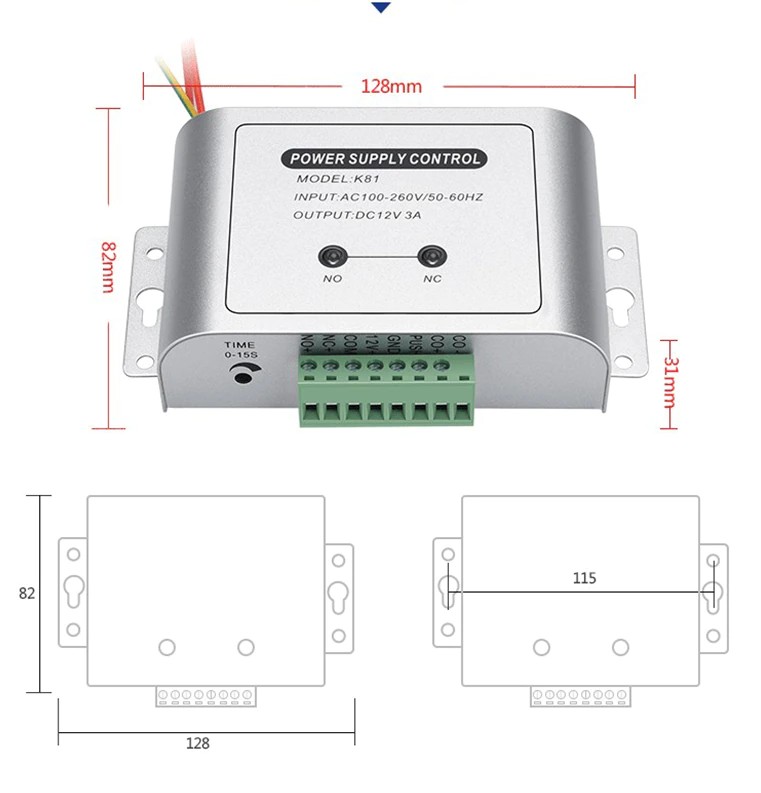 DC 12V3A 3A/5A 시간 지연 조절 가능 AC90V-260V 입력 NO/NC 출력 12VDC 액세스 제어 전원 공급 장치 스위치