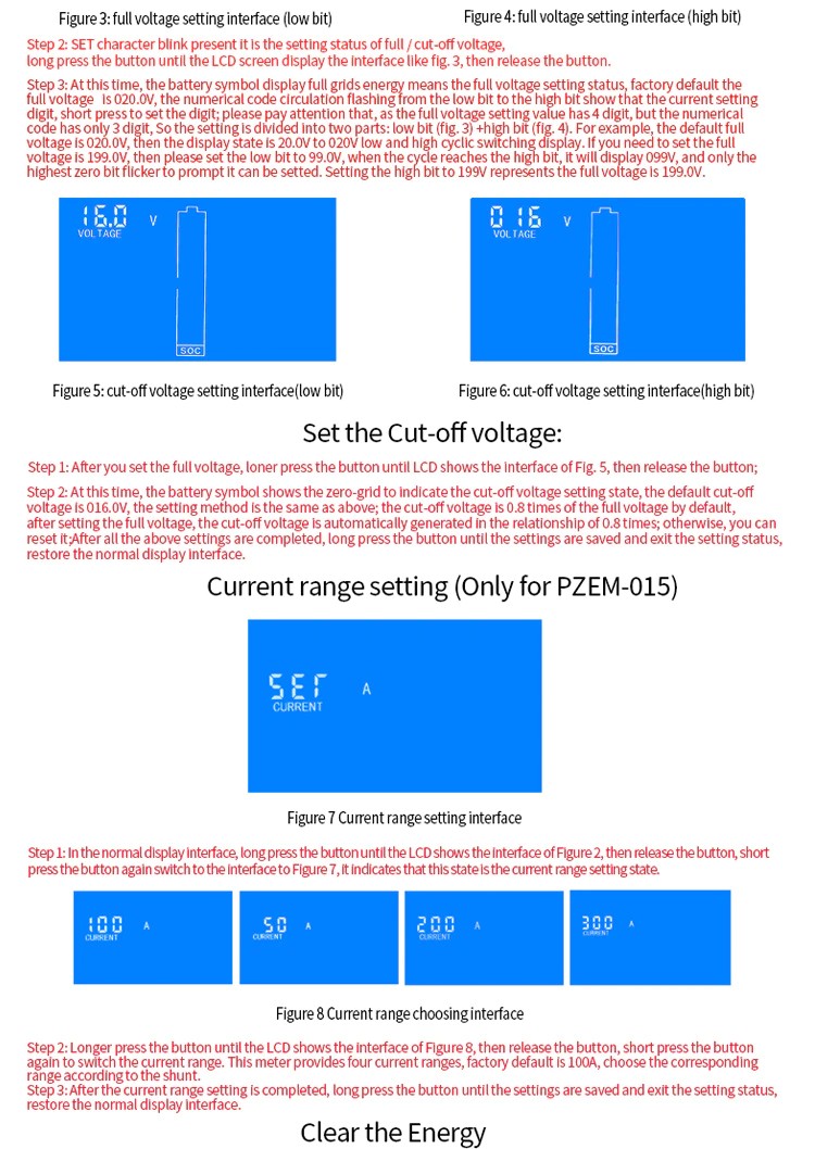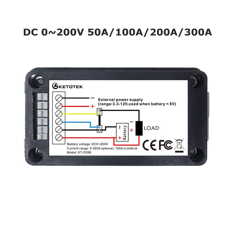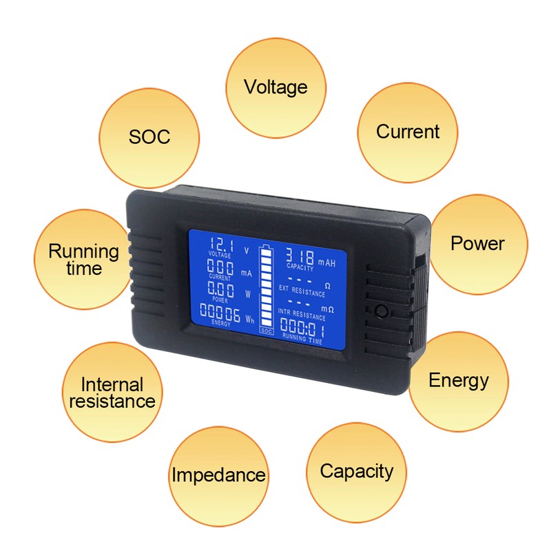 DC 전압계 전류계 전력 에너지 디지털 전압 전류 캡 옴 시간 SOC 미터 LCD DC 60-200V 10A/50A/100A/200A/300A 션트