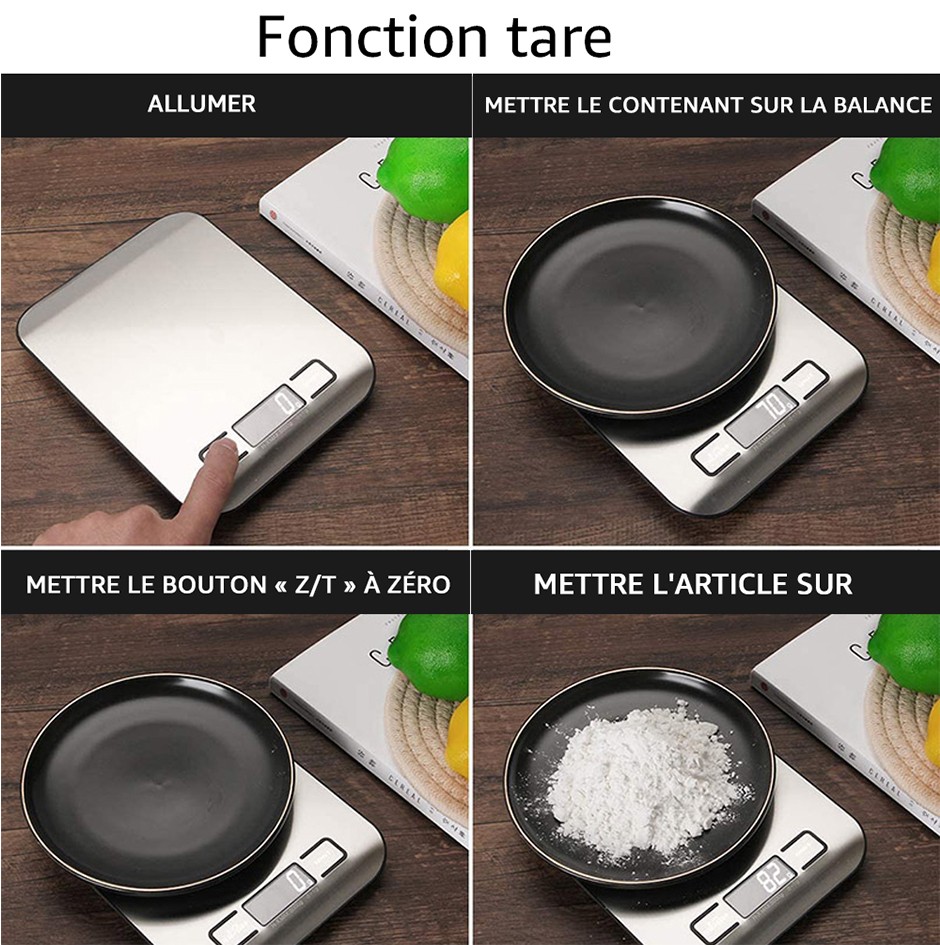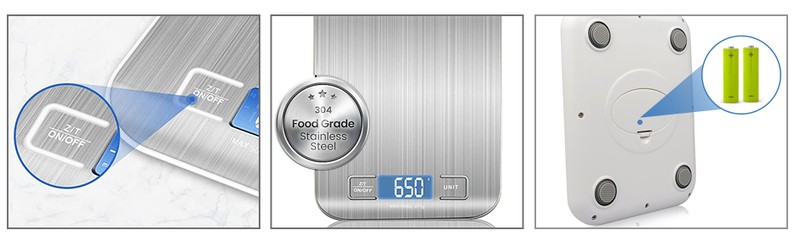 온/오프 버튼을 눌러 0으로 돌아갑니다. 밀가루 또는 시럽 또는 여러 항목과 같은 지저분한 재료를 한 번에 측정 할 때 적합합니다.