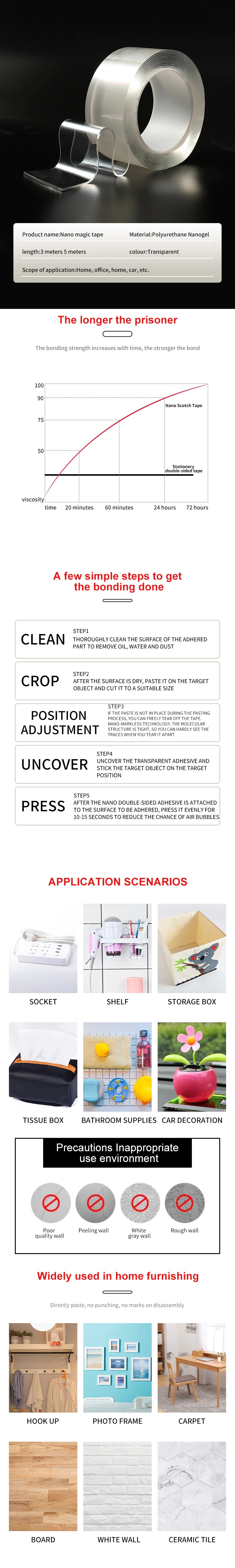 4. 두 배 편들어진 접착 테이프, 빨 수 있고 재사용 할 수 있는.