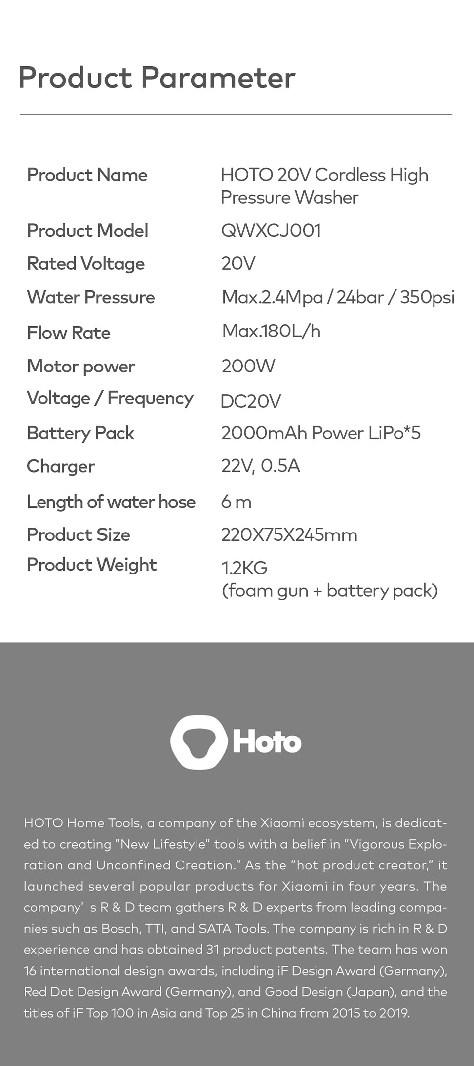 제품 무게: 1.2KG (폼건 + 배터리 팩)
