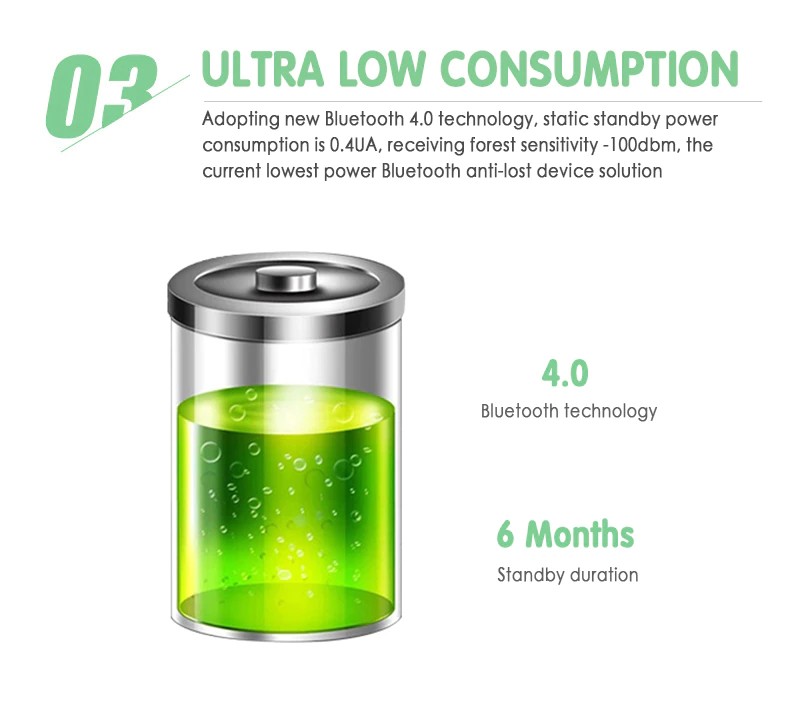 이 반대로 분실된 장치는 최신 Bluetooth 4.0 저전력 기술에 근거를 둔 제품입니다. 휴대 전화와 같은 모바일 장치와 응용 프로그램 소프트웨어 및 블루투스 연결을 사용하여, 그것은 (예: 키, 핸드백 등) 항목과 귀중품을 잃게 쉽습니다. 함께 묶여서 항목의 분실 방지 알림을 달성하고 휴대 전화의 기능을 찾고 카메라, 녹음 및 기타 기능을 원격으로 제어합니다 (예: 파티 사진, 셀프 타이머 등).