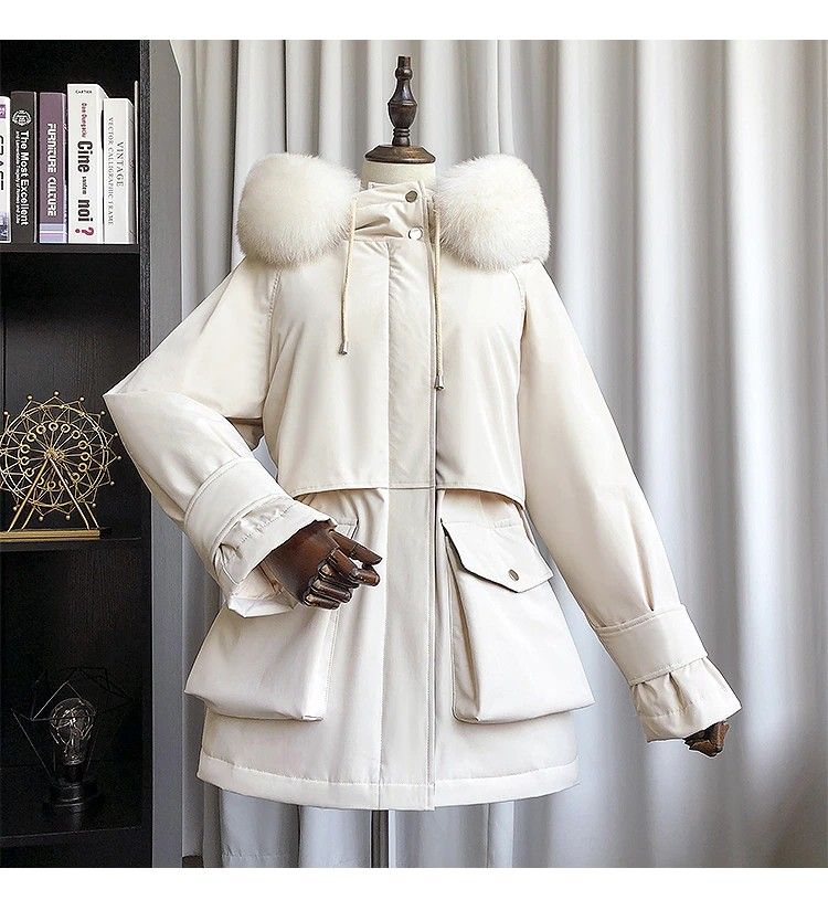 Womens Parkas : 화이트 오리 다운 재킷