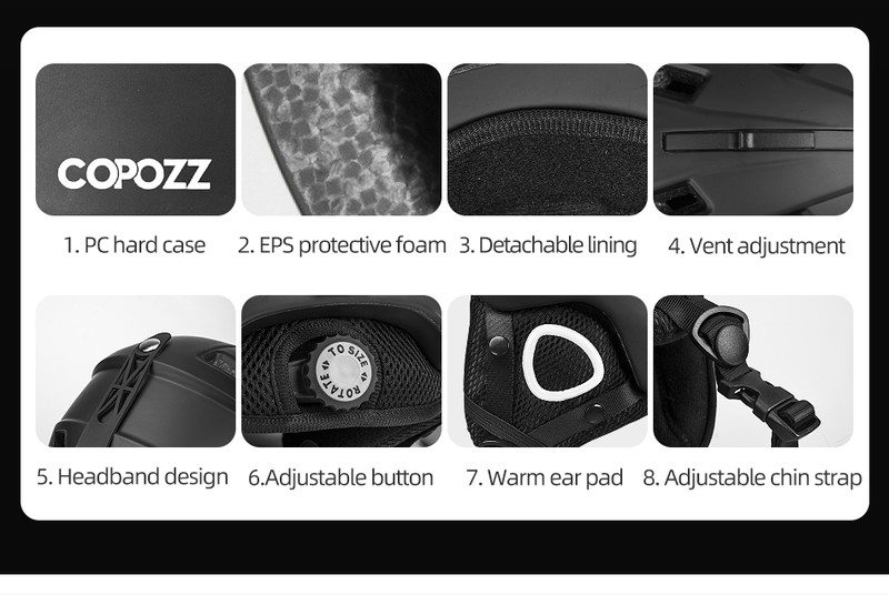 안전 인증서가있는 COPOZZ 라이트 스키 헬멧 통합 성형 스노우 보드 헬멧 53-61CM 사이클링 스키 남성 여성