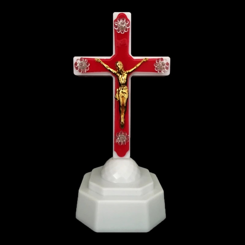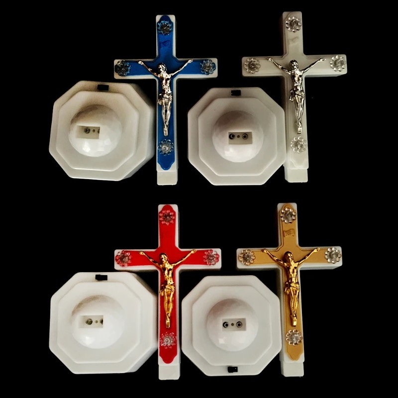 빨간색 파란색과 흰색 led eucharistic 램프 홈 교회 가구 기사, 그것은 고품질 플라스틱, 좋은 솜씨, 내구성 및 내구성으로 이루어집니다. 교차에서 기초, 사용할 때, 기초로 교차하는 base.3 단면도 7 건전지를 삽입하십시오, 건전지는 일치할 필요가 있습니다, 판매자는 건전지 제품을 제공하지 않습니다.