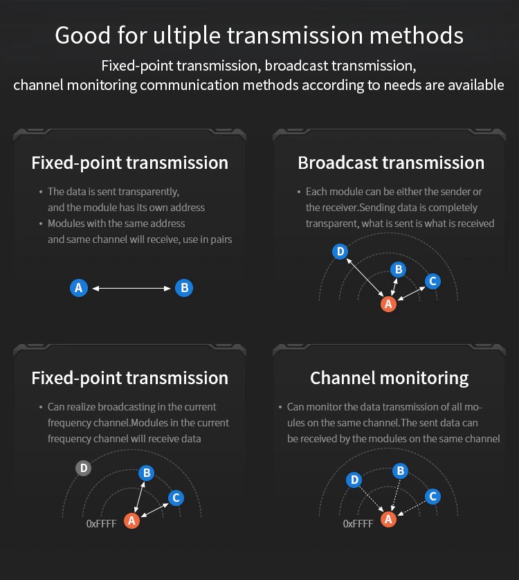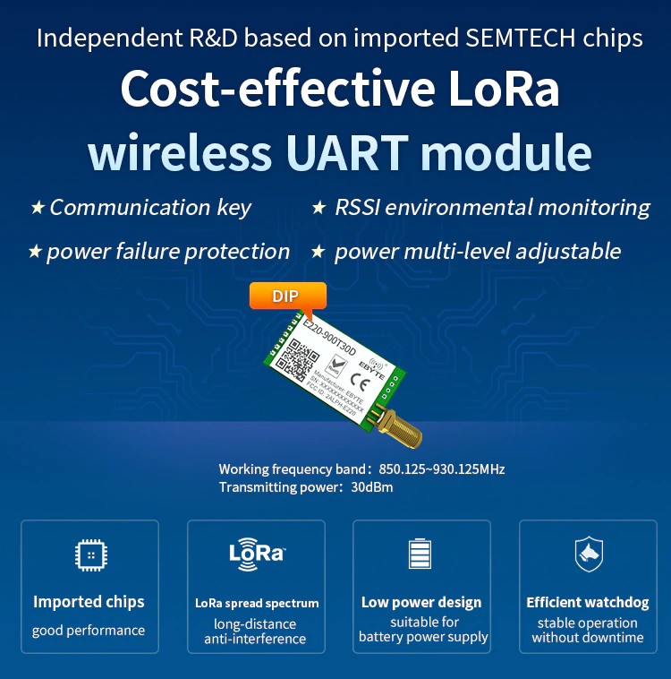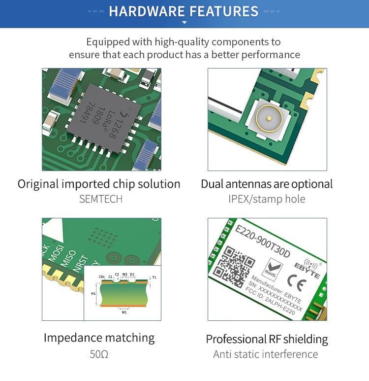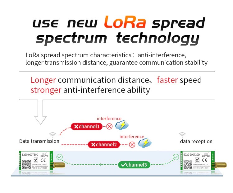 SPI | LLCC68 | 433M 470M | 30 | 10 | 1.76 ~ 62.5k/0.6 ~ 300k | SMD | 38.5*24 | 차세대 LoRa 확산 스펙트럼 기술 | |