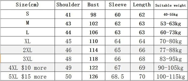 또는 저희에게 고도/무게/가슴/허리/어깨를 말하십시오, 우리는 당신을 위한 제일 제안을 만들 것입니다.