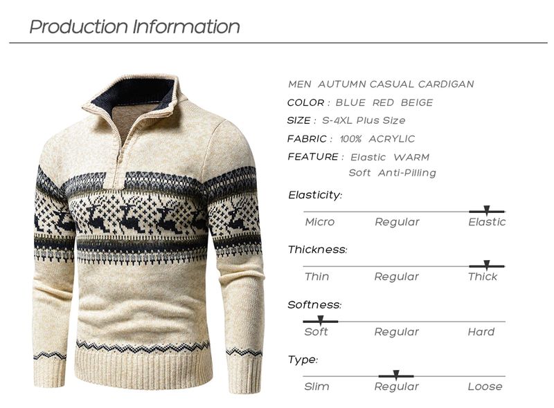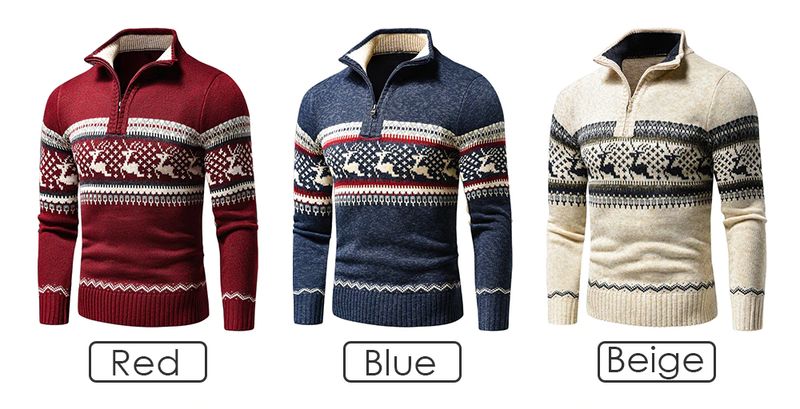 유형 1 : 남성 겨울 따뜻한 100 % 아크릴 쿼터 zip 스웨터 풀오버