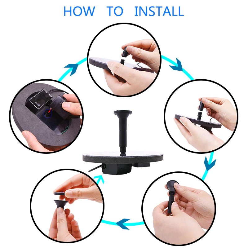 1. make sure put enough water in the fountain, so pump can stay underwater, completely 2. solar panels must be completely exposed to the sun, not the leaves or other items. Panel surface3. please regular cleaning pump, lest jam pump