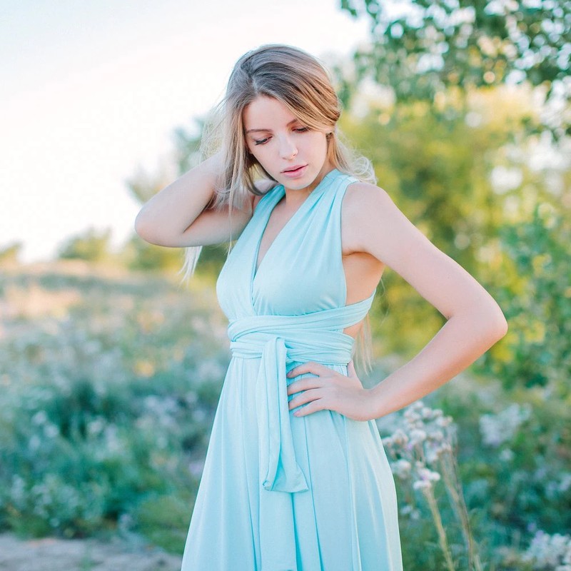 신부 들러리 드레스, 밝은 파란색, 주름 바닥 길이, 컨트리 비치 웨딩 게스트 파티 가운, 저렴한 긴 무도회 드레스