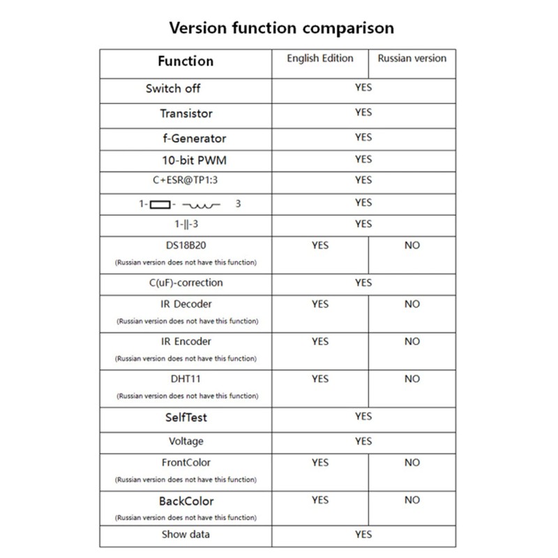 가득 차있는 기능 구경측정은 기능 메뉴에서 들어갈 필요가 있고, 220nf 축전기는 또한 요구됩니다. 가득 차있 기능 구경측정은 더 포괄적인 구경측정 과정을 실행하고 더 오래 걸릴 것입니다. 기능 메뉴를 입력 한 후 메뉴 항목 "Selftest" 에 테스트 버튼을 회전 한 다음 전체 기능 교정 프로세스에 들어가기 위해 테스트 버튼을 누릅니다. 깜박이는 문자열 "짧은 프로브!" 빠른 교정과 동일한 화면에 나타납니다. 3 개의 테스트 포인트를 단락하고 교정 프로세스가 진행될 때까지 전선을 사용하십시오. 깜박이는 문자열이 "프로브를 분리!" 화면에 나타나면 단락 회로 세 가지 테스트 포인트를 제거하고 교정 프로세스가 진행될 때까지 계속 기다립니다. 문자 문자열이 "1-| |-3> 100nf" 출력되면 테스트 포인트 TP1 및 tp3에 준비된 220nf capacitors 터를 설치하십시오. 화면이 "테스트 끝" 을 프롬프트 할 때까지 기다려, 전체 기능 교정 프로세스가 완료됩니다.