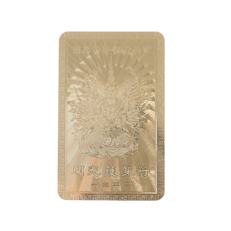 Guanyin 디자인과 한자 “yi sheng bing an” 를 가진 카드의 한쪽은 입니다