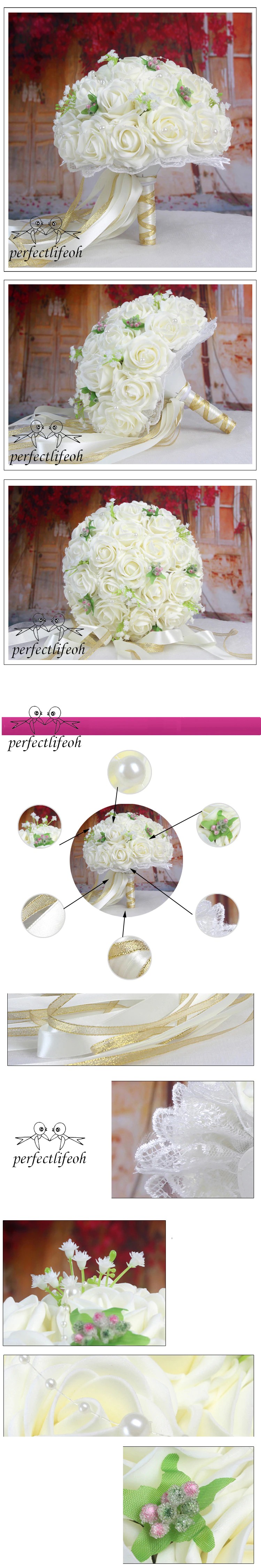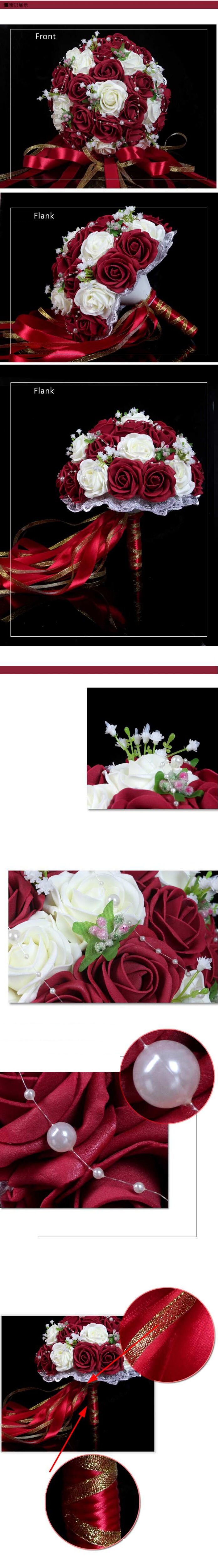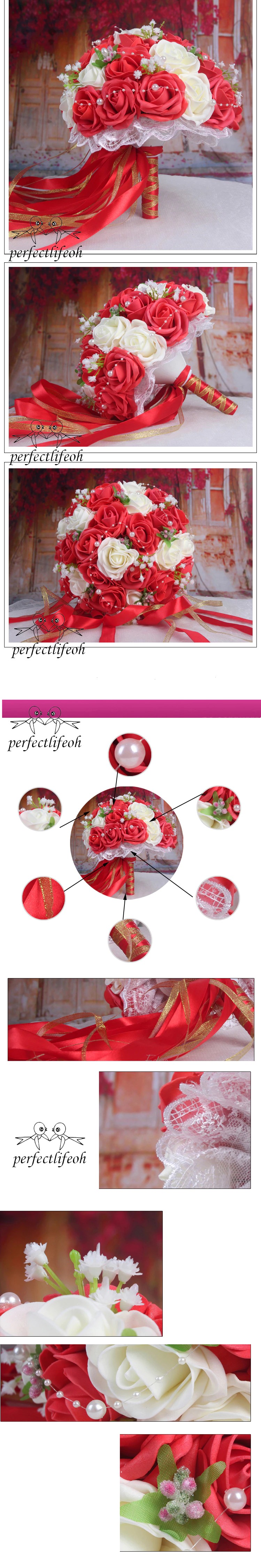 Perfectlifeoh-버건디 웨딩 부케, 핑크/레드/화이트/버건디 신부 들러리 꽃 인공 꽃 장미 부케 신부