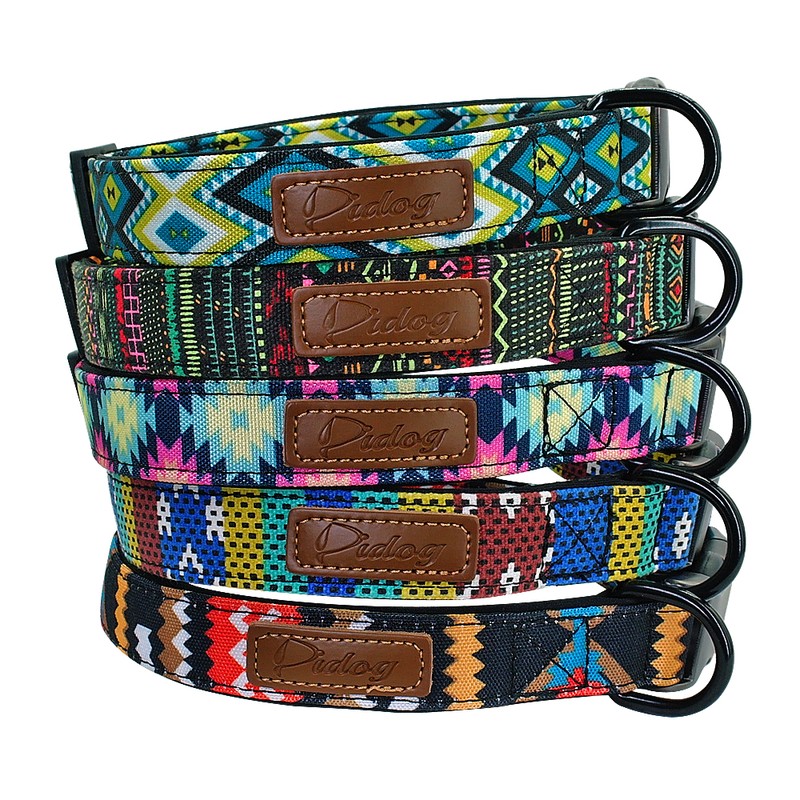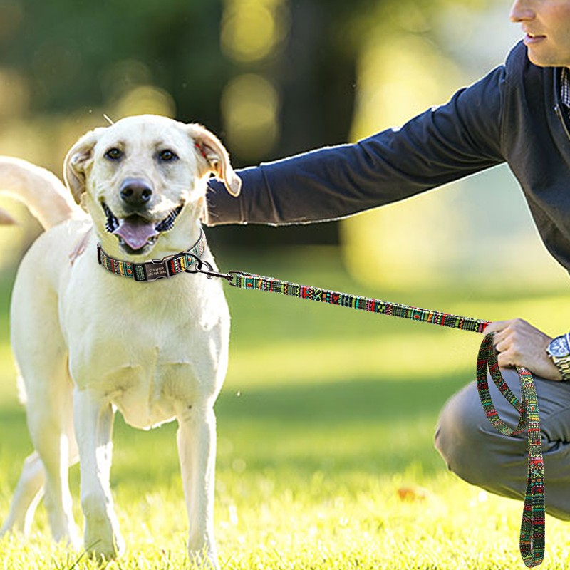 가죽 끈이있는 맞춤형 개 목걸이 나일론 맞춤형 애완 동물 ID 고리 소형 인쇄용 대형 개용 가죽 끈